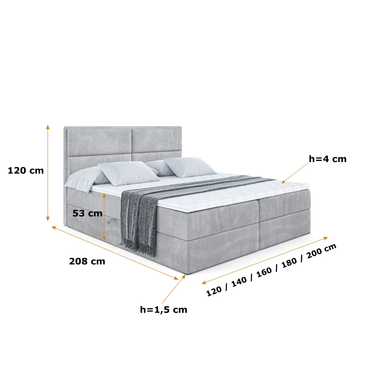 Boxbett AURA Hellgrau - Monolith 84 120x200 cm