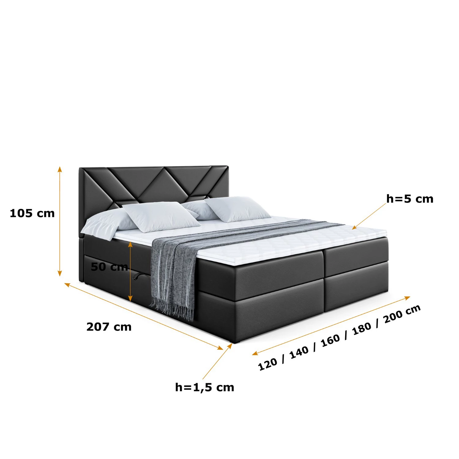 Boxbett BARWA Schwarz - Soft 11 120x200 cm