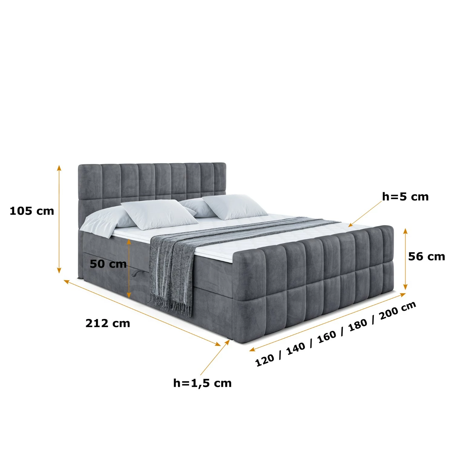 Boxbett MIAMI-Z Dunkelgrau - Casablanca 2315 120x200 cm