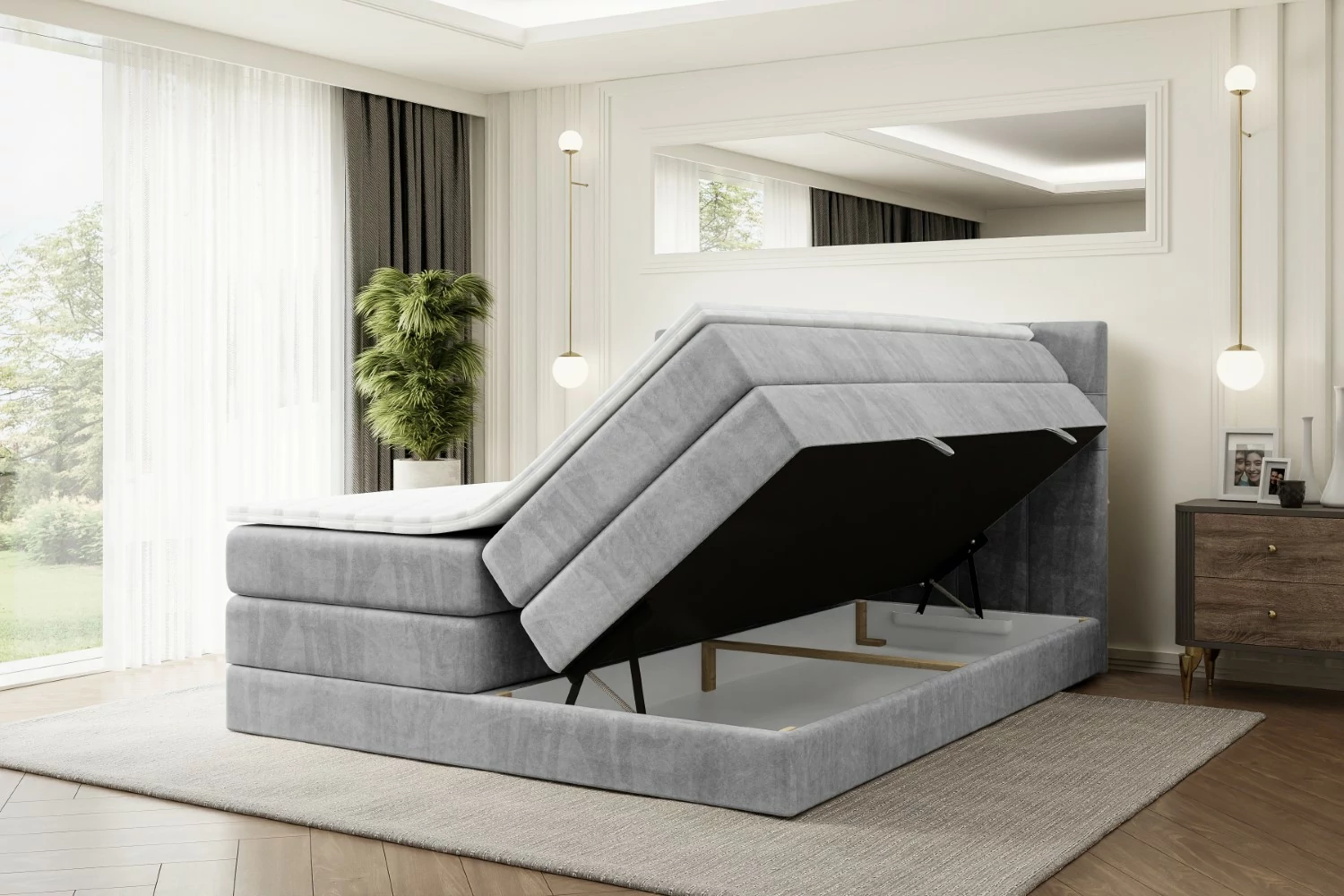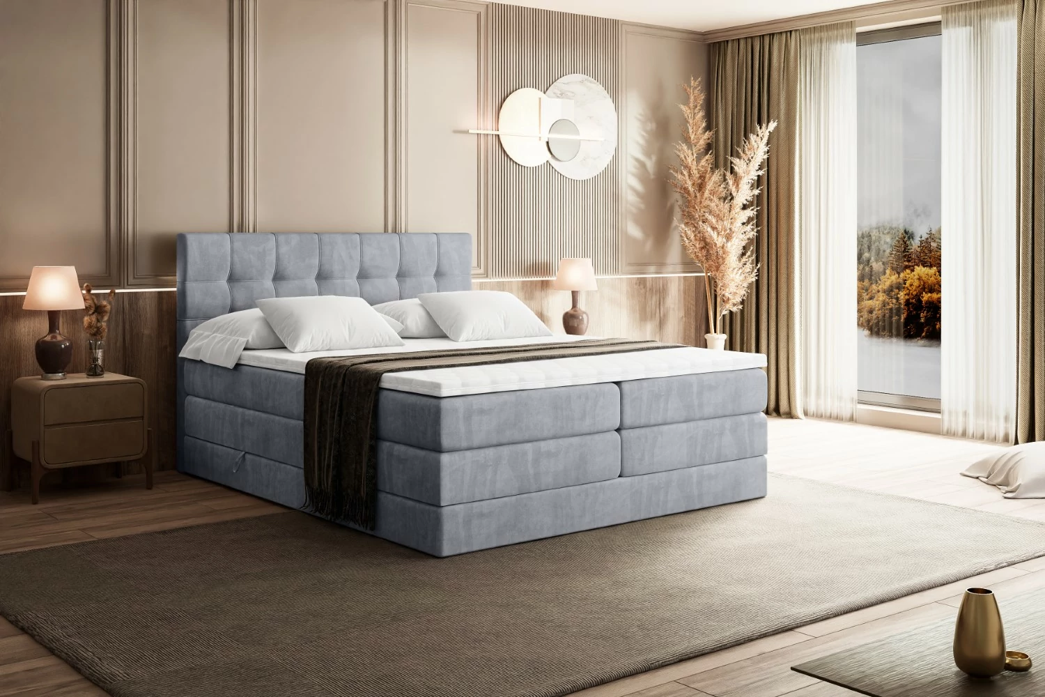 Boxspringbett BERO KING Hellgrau - Monolith 84 140x200 cm