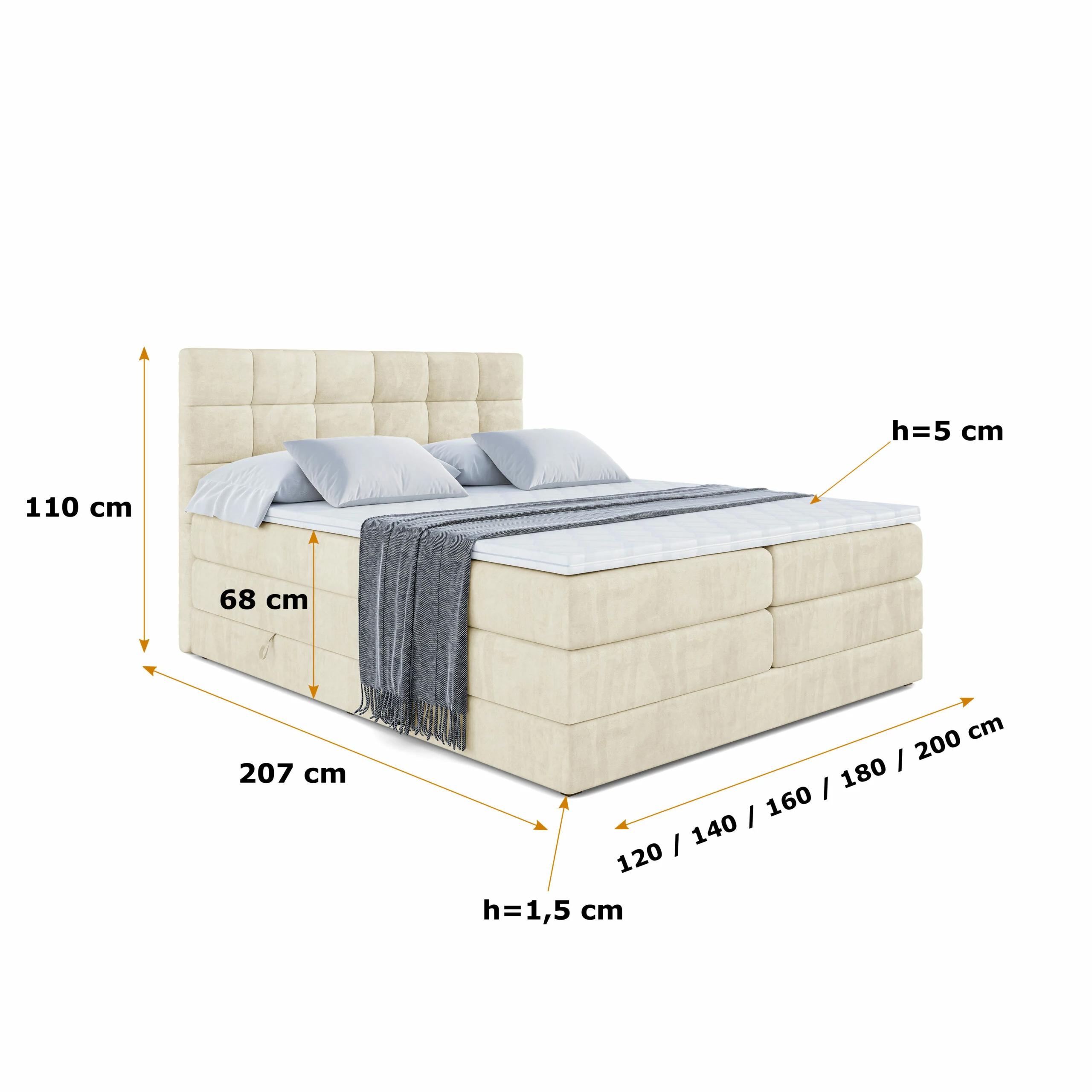 Boxspringbett BRUGO KING Beige - Monolith 4 120x200 cm