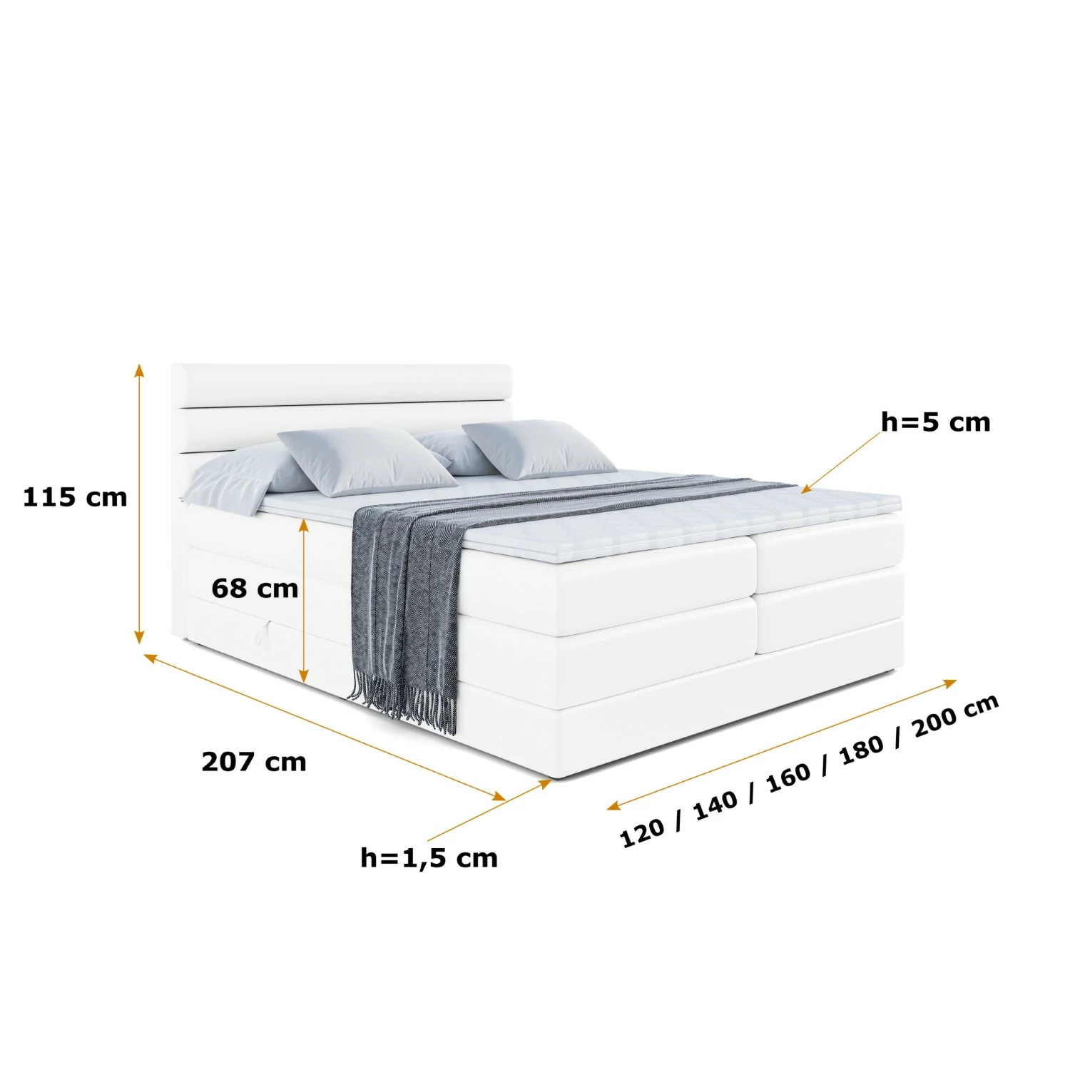 Boxspringbett CELESTIA KING Weiß - Soft 17 120x200 cm
