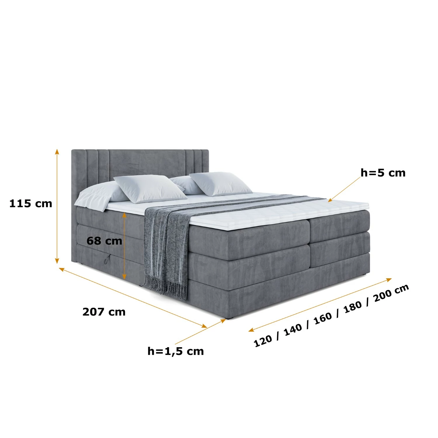 Boxspringbett IDRIKO KING Dunkelgrau - Casablanca 2315 120x200 cm