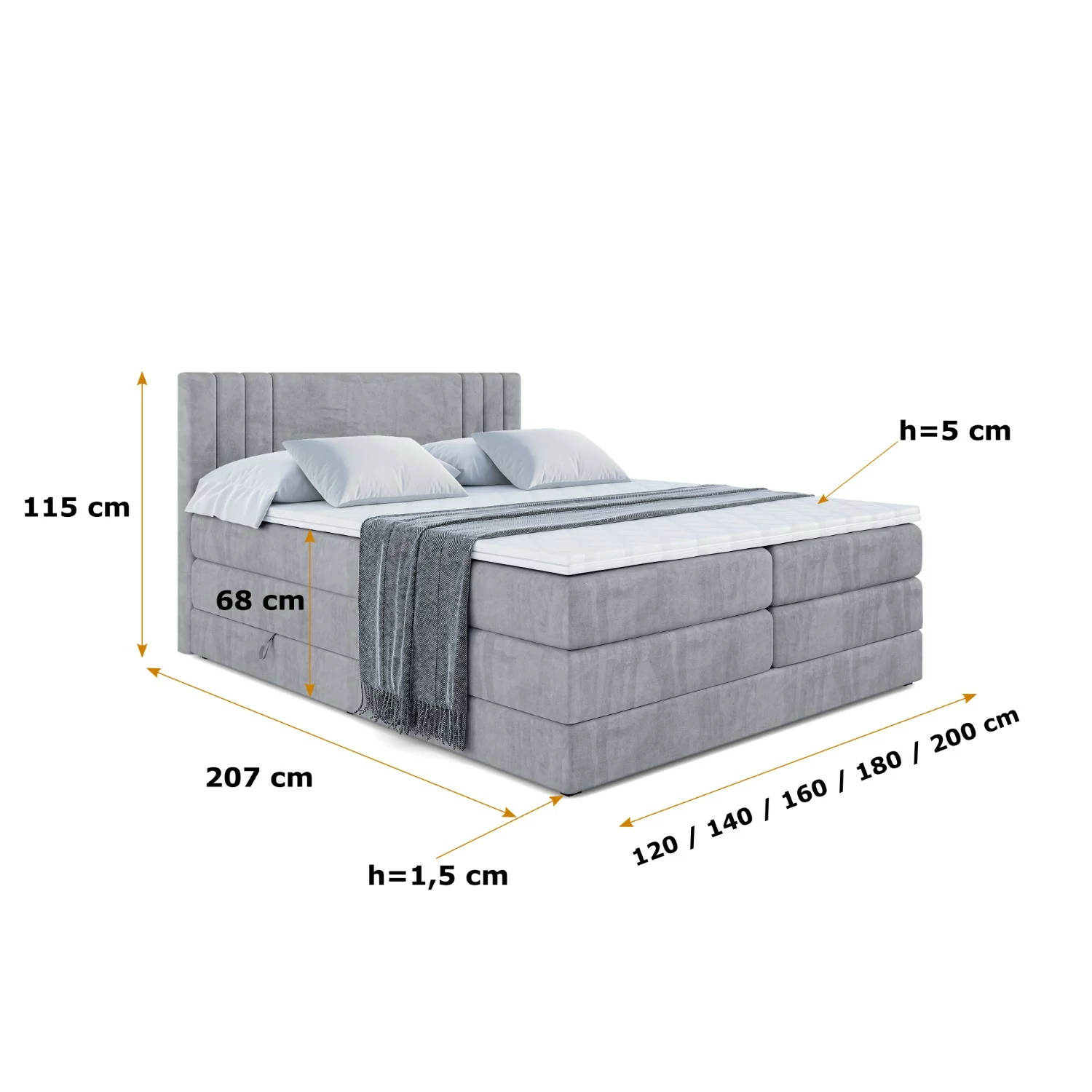 Boxspringbett IDRIKO KING Grau - Casablanca 2314 120x200 cm