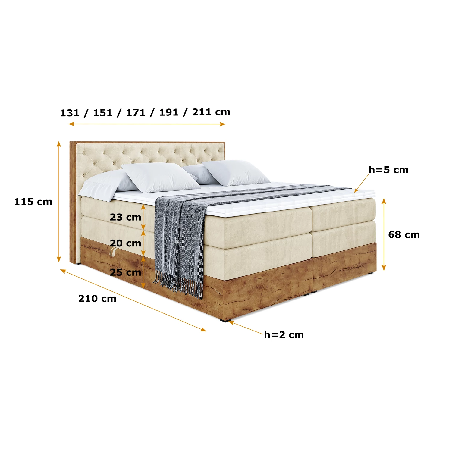 Boxspringbett LOLLI3 KING Beige - Monolith 4 120x200 cm