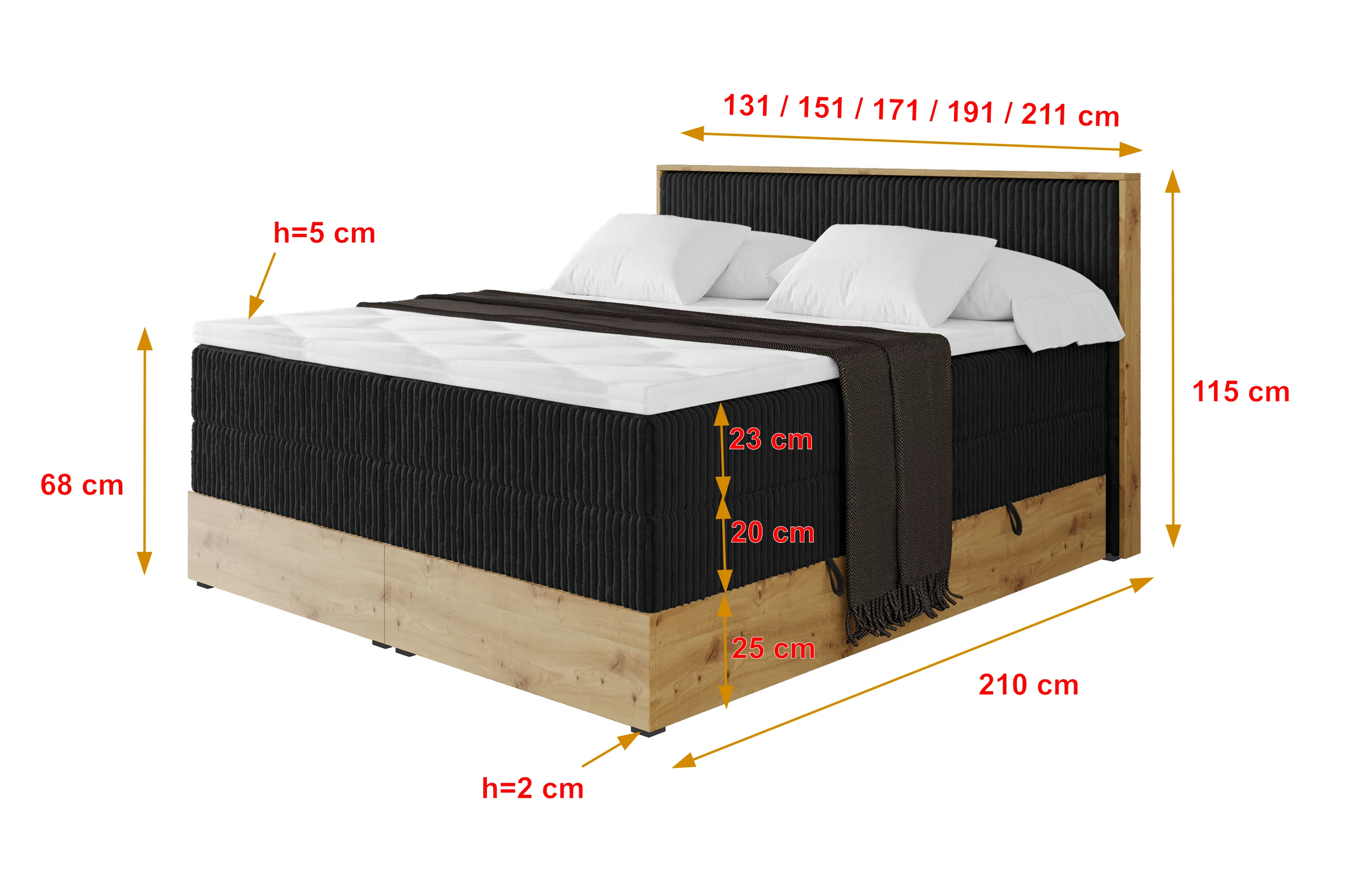 Boxspringbett LOLLI9-KING Schwarz - Tilia 100 140x200 cm