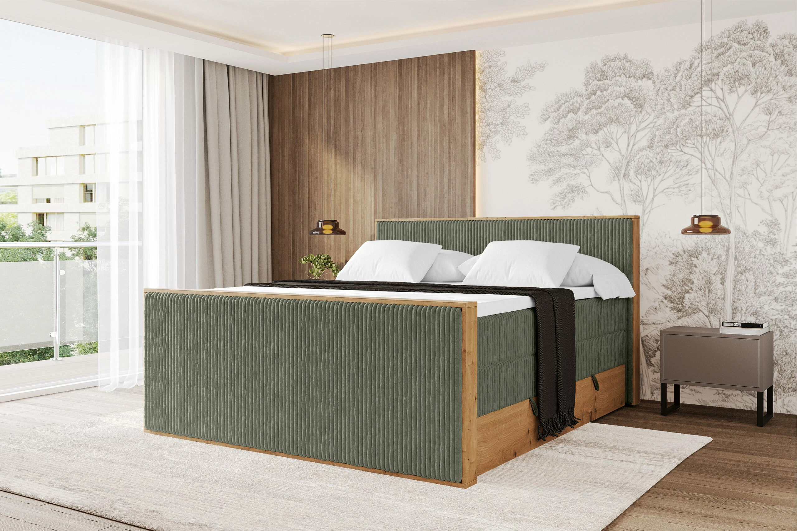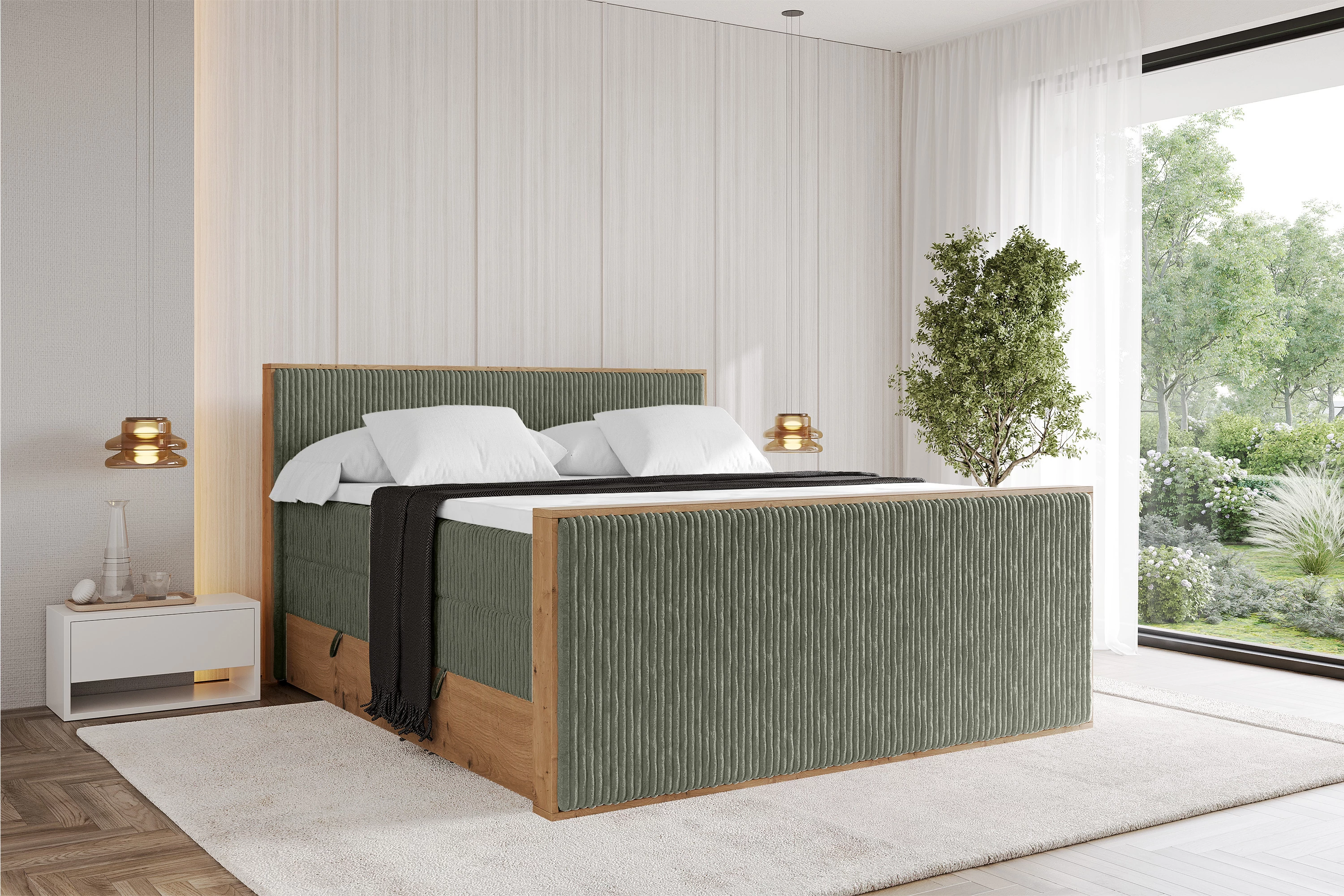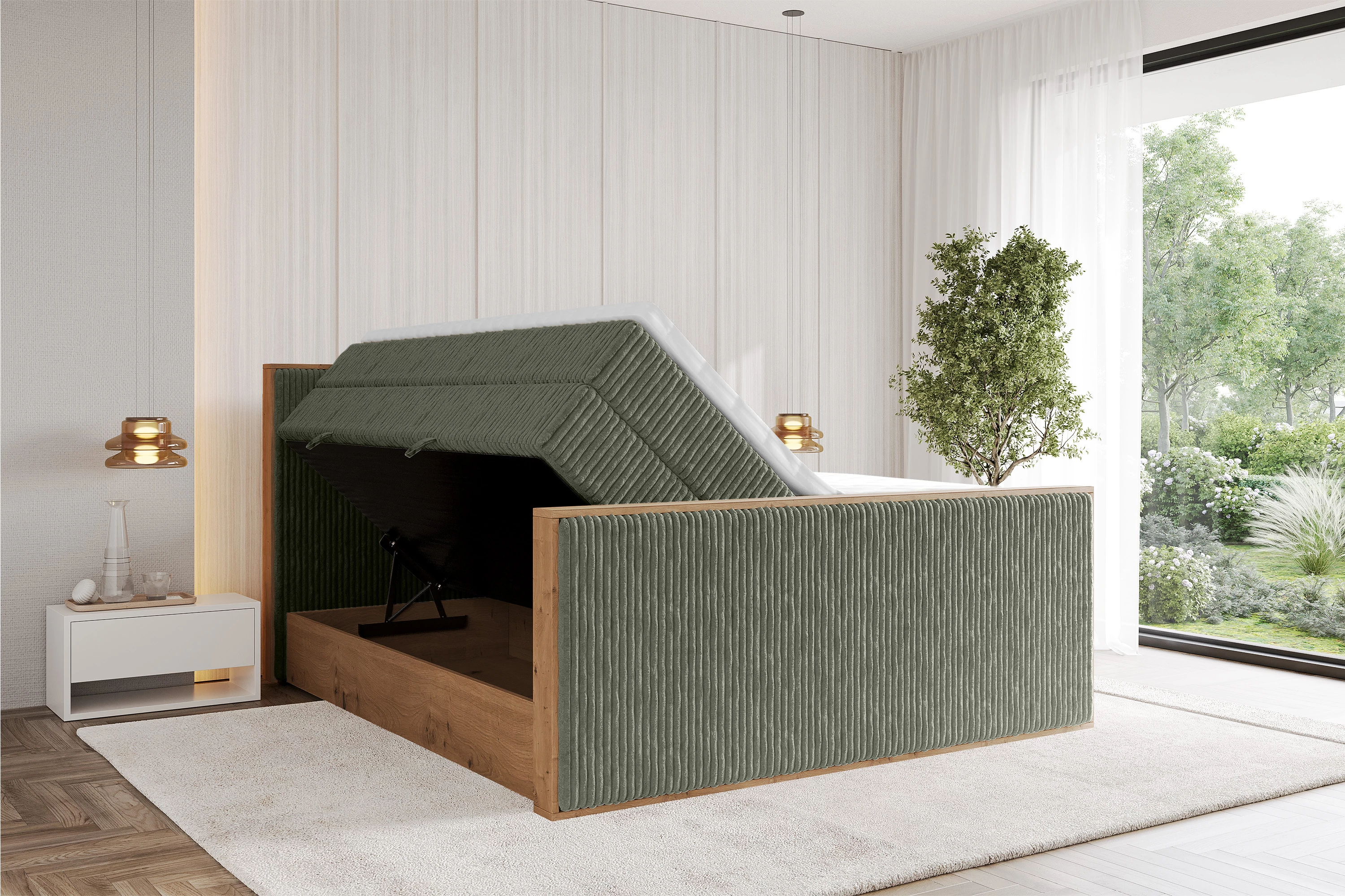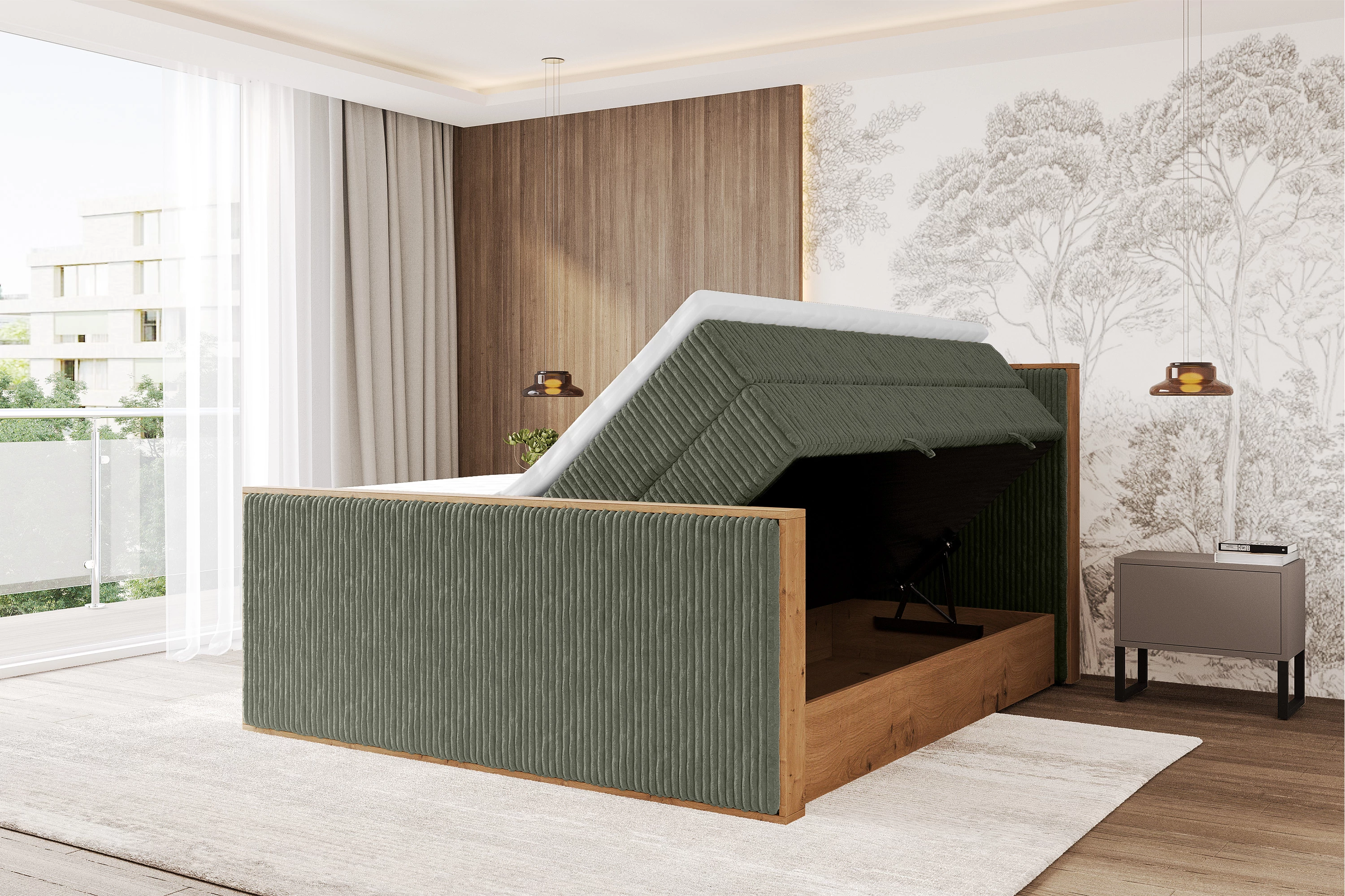 Boxspringbett LOLLI9-Z-KING Olivgrün - Tilia 37 120x200 cm