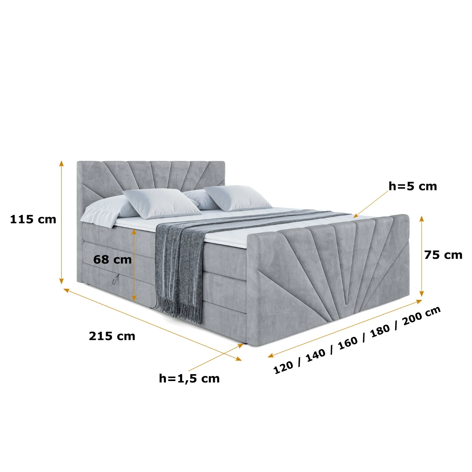 Boxspringbett MILTIO-Z KING Grau - Casablanca 2314 140x200 cm