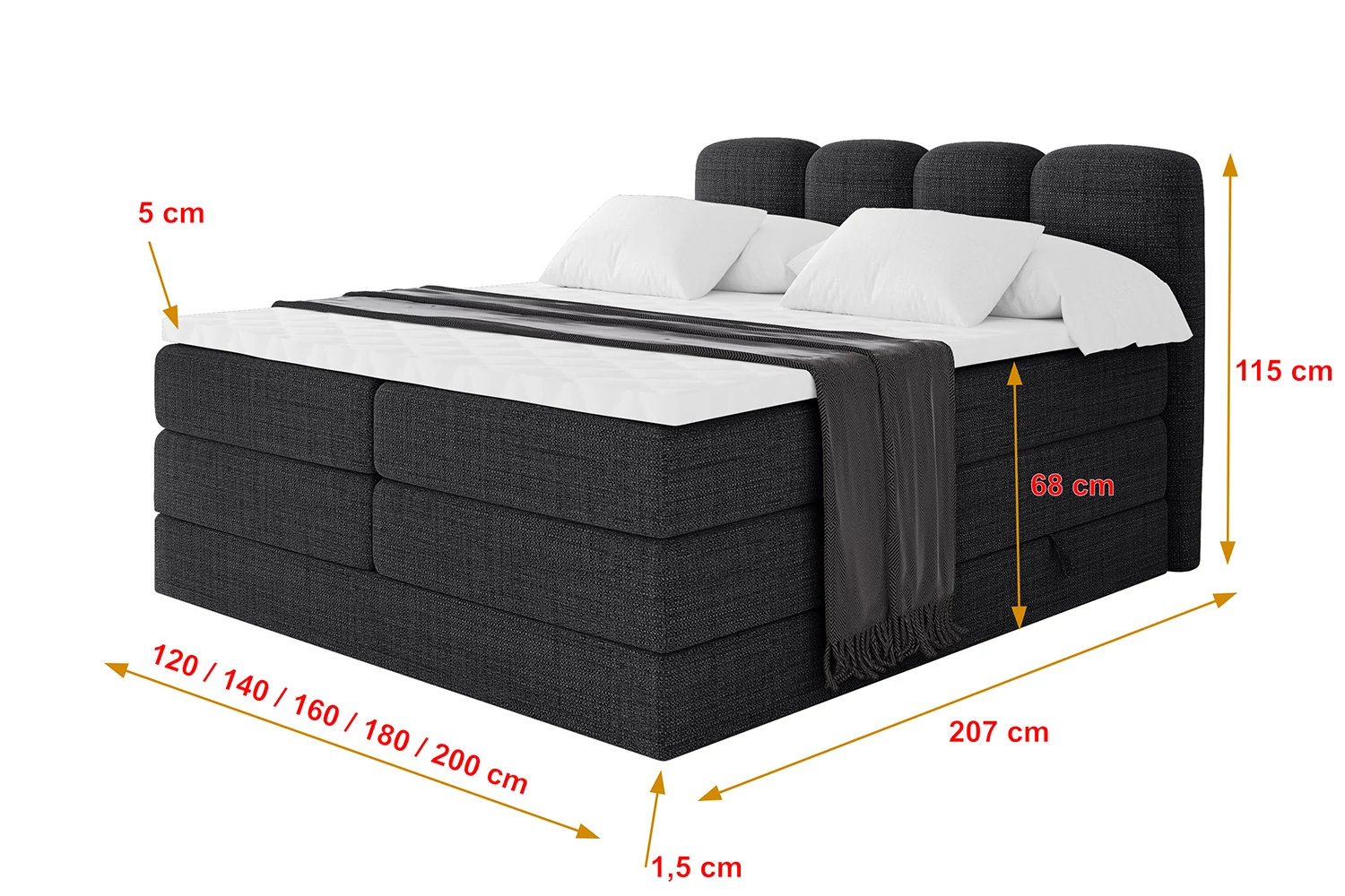 Boxspringbett NINA KING Schwarz - Aragon 99 120x200 cm