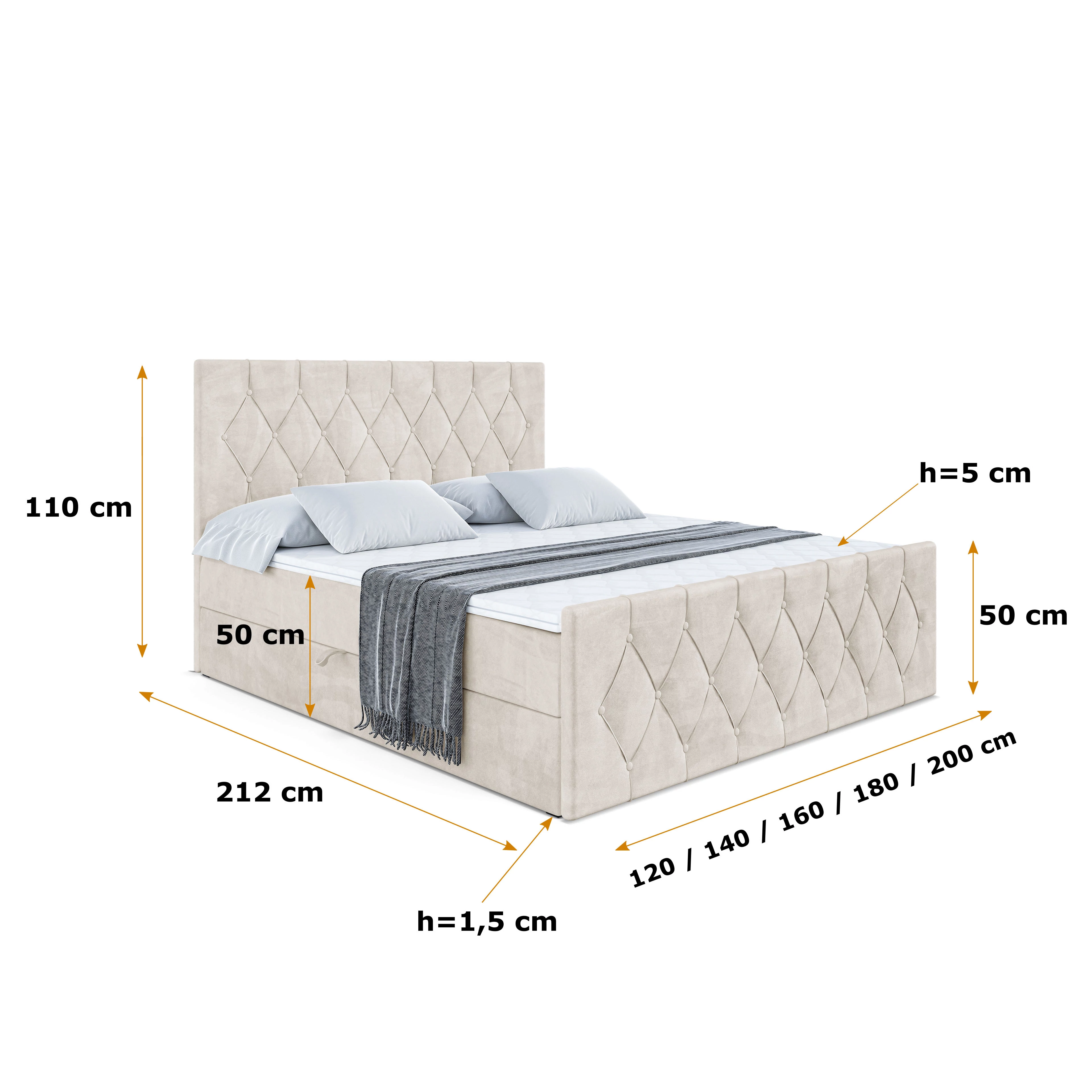 Boxspringbett VELANTO-BZ KING Beige - Casablanca 2301 120x200 cm