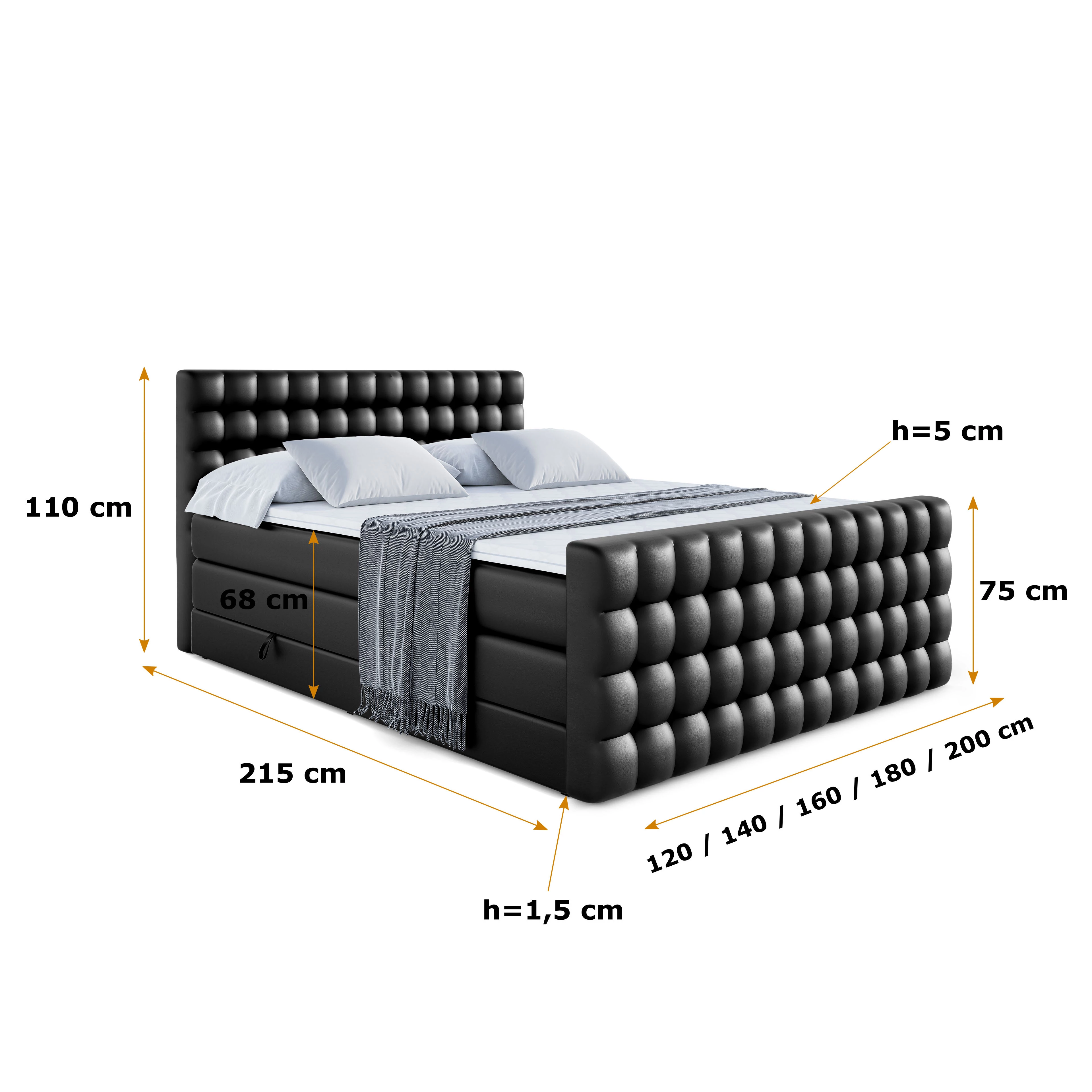 Boxspringbett VIONE-Z KING Schwarz - Soft 11 120x200 cm