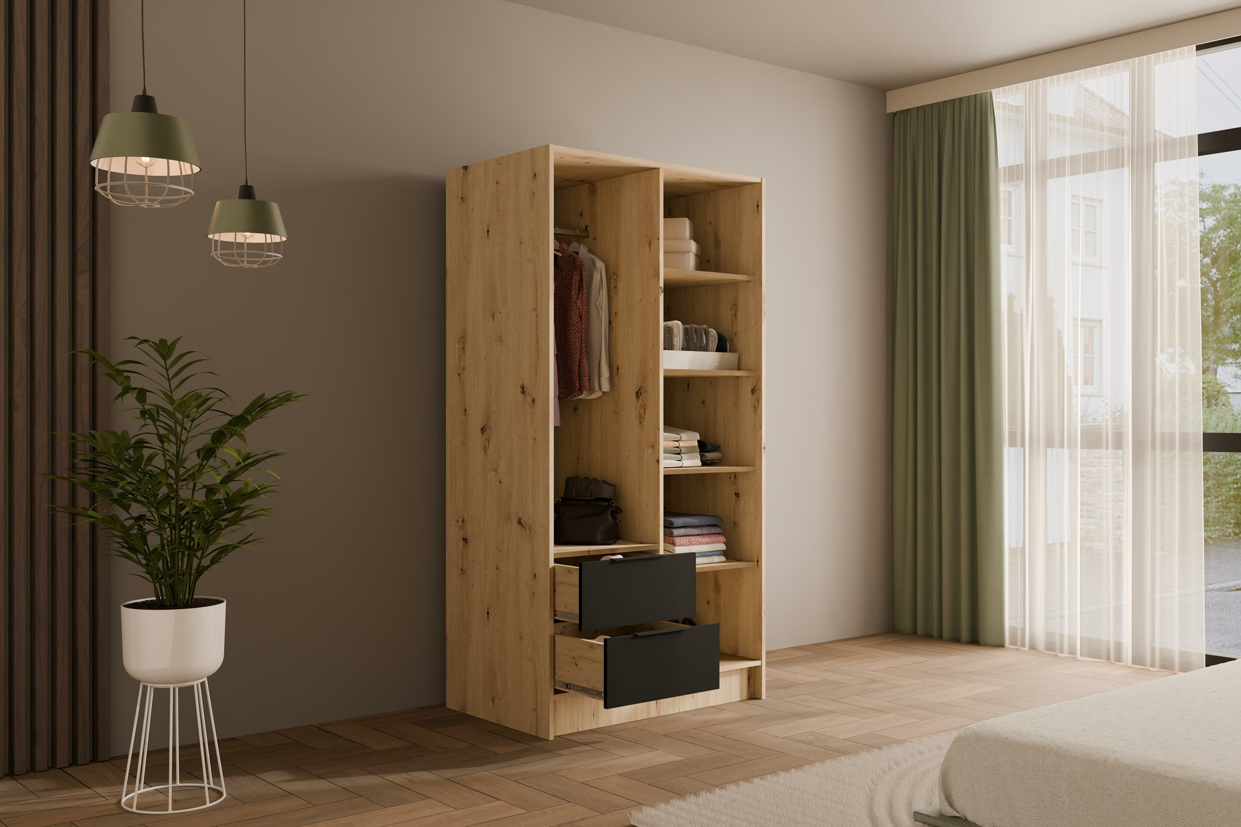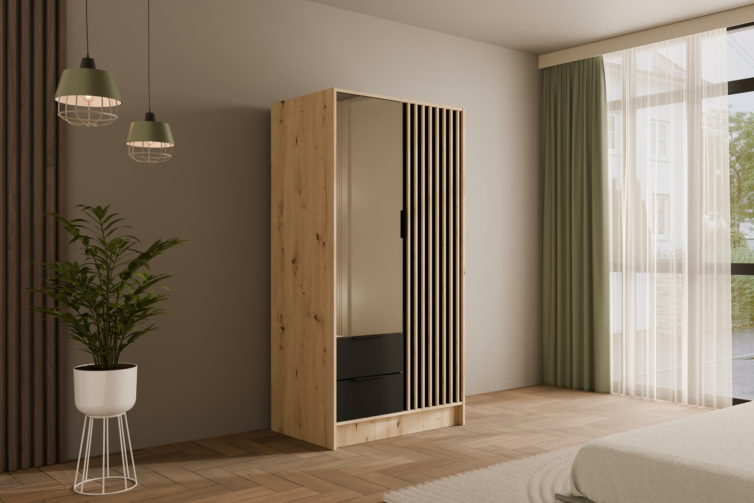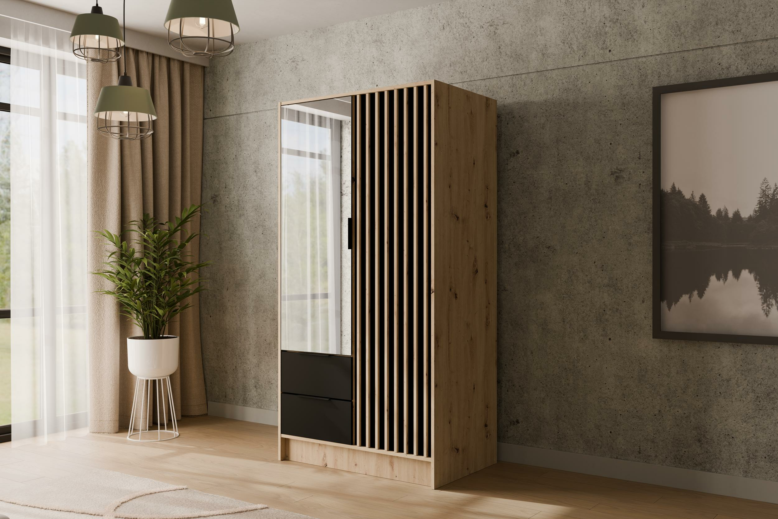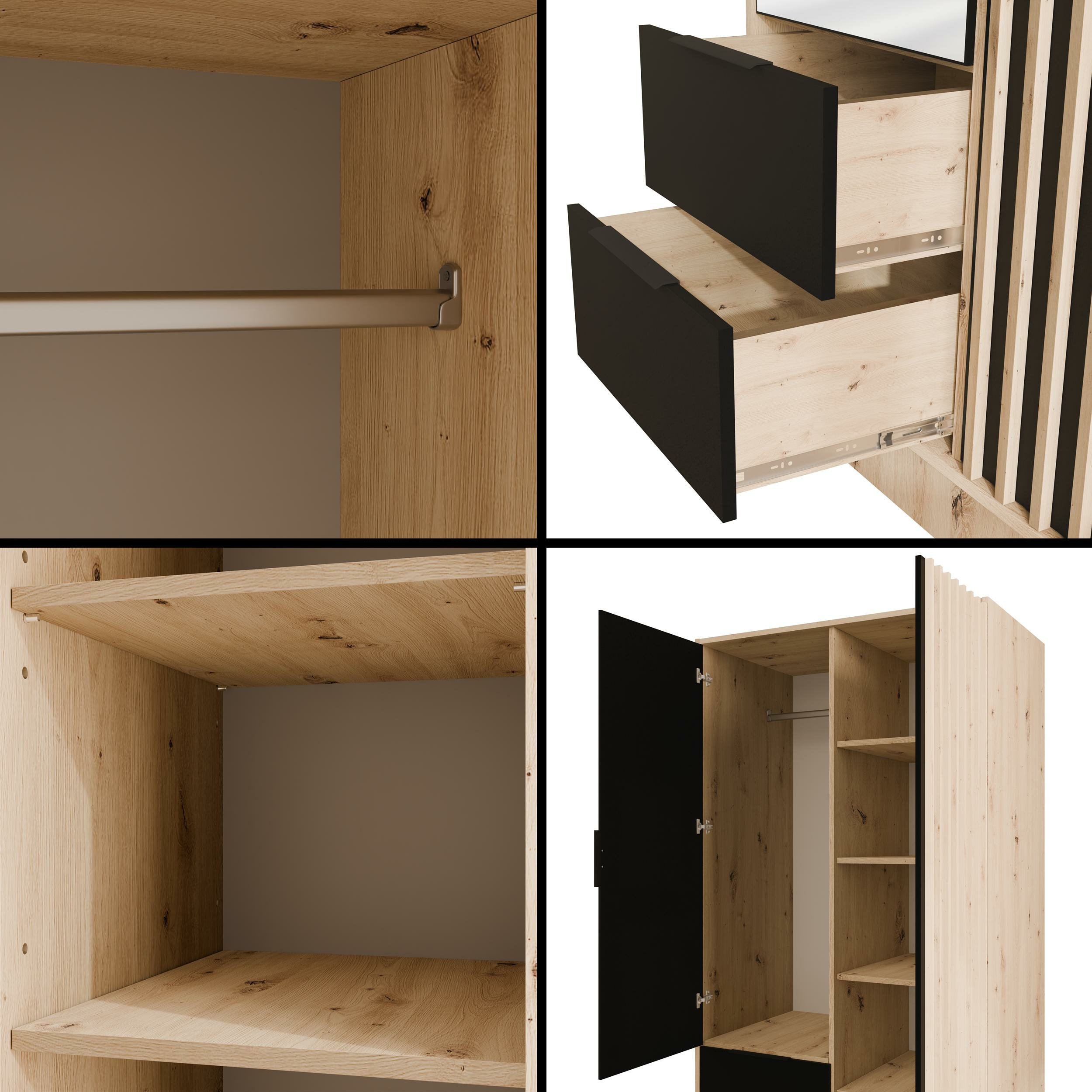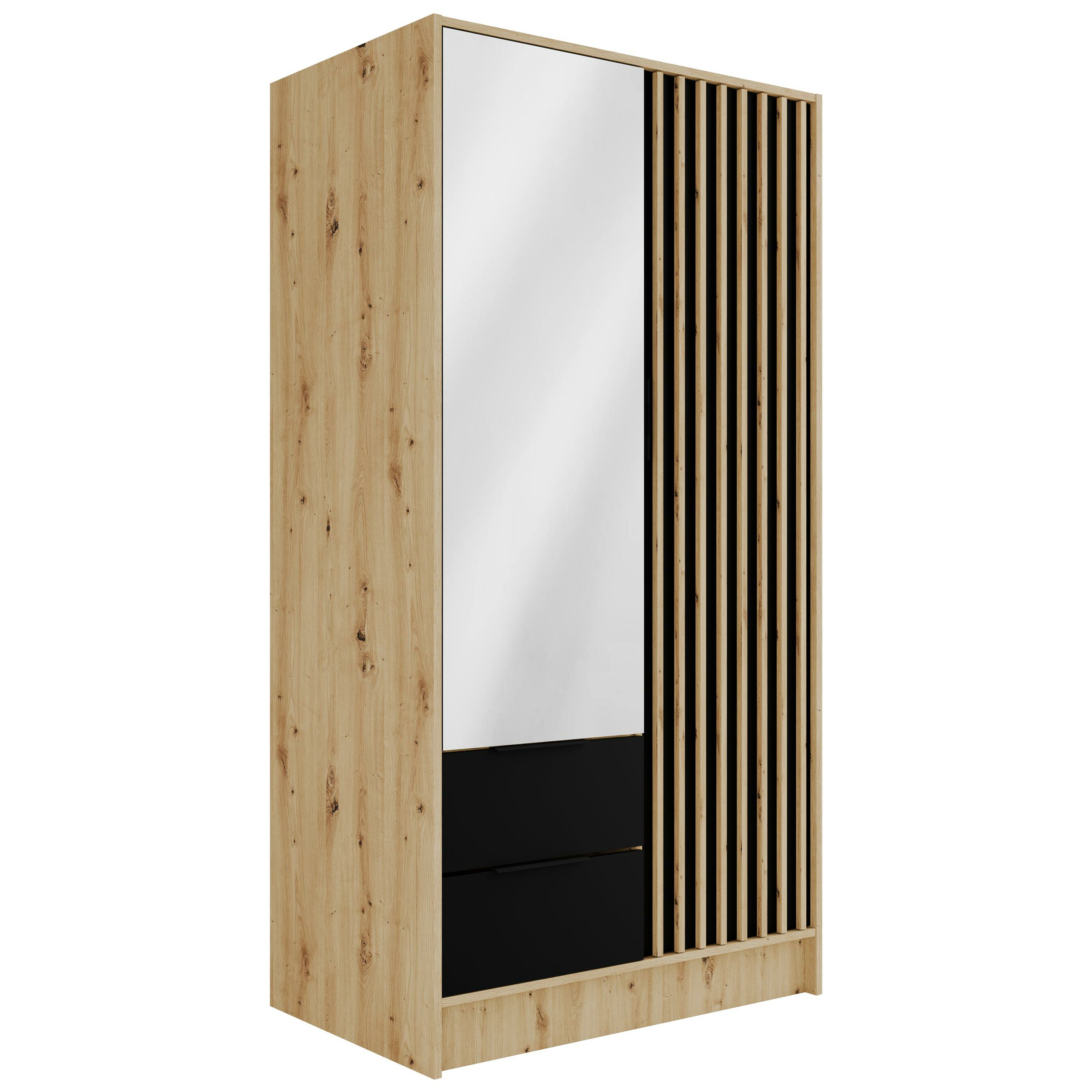 Drehtürenschränke NELIA Eiche Artisan + Schwarz + Eiche Artisan 102 cm x 51 cm x 200 cm