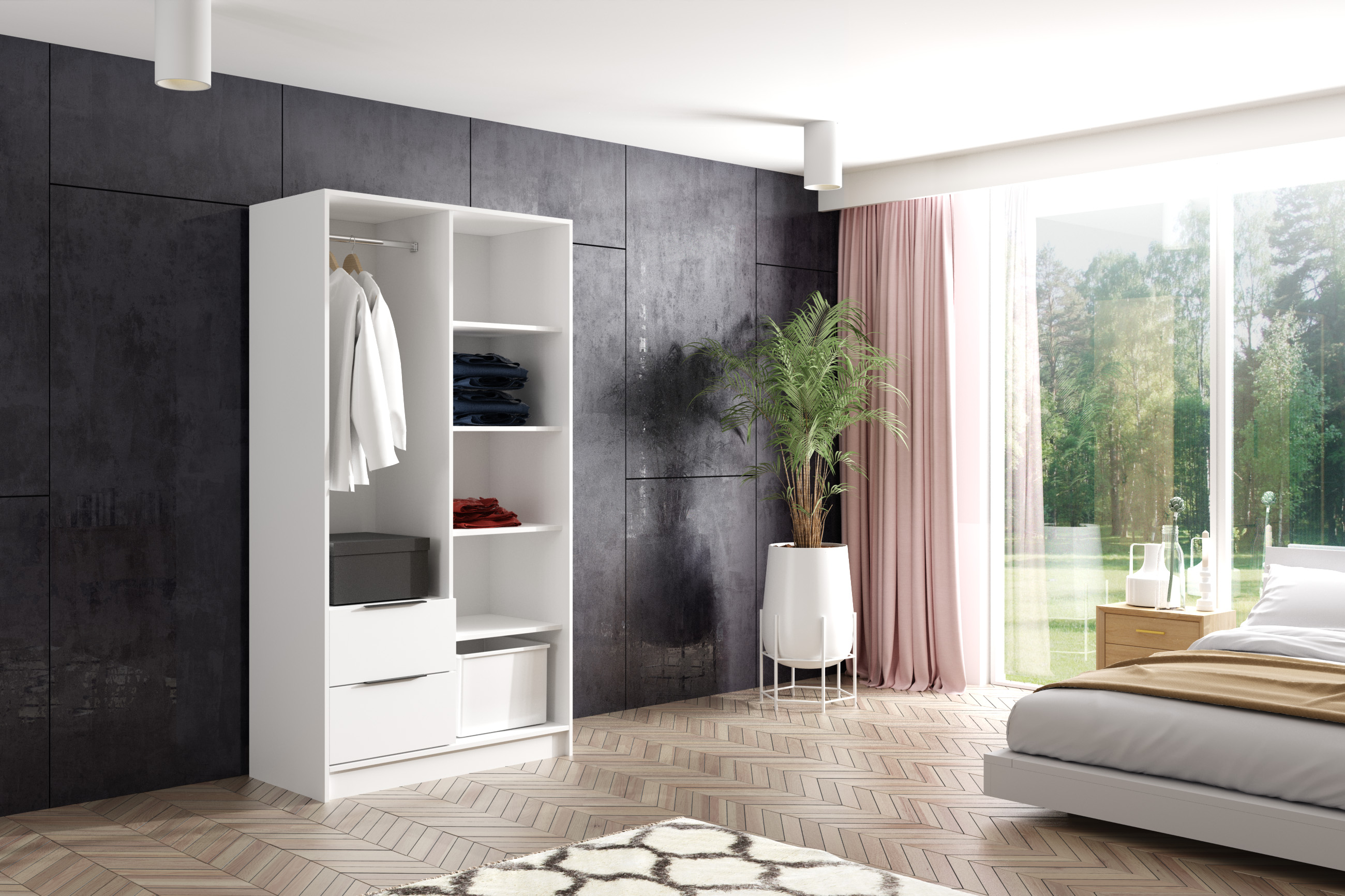 Weiß + Weiß + Eiche Artisan 102 cm x 51 cm x 200 cm