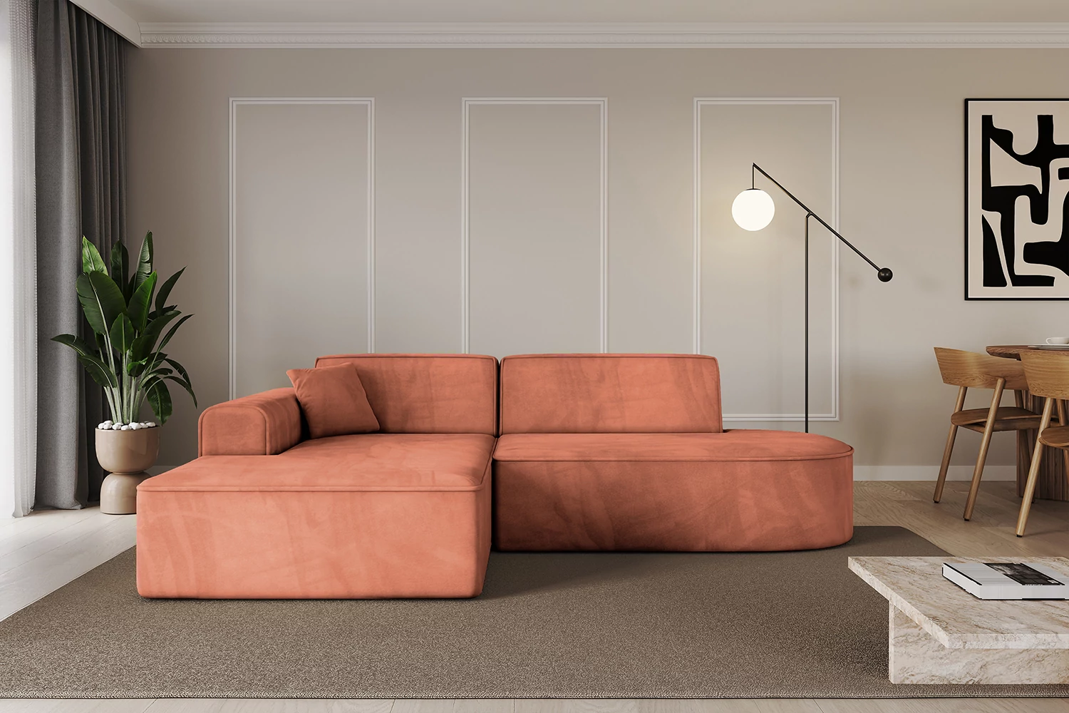 Ecksofa IREA-L1-v3 Apricot - Dream Velvet 202.07