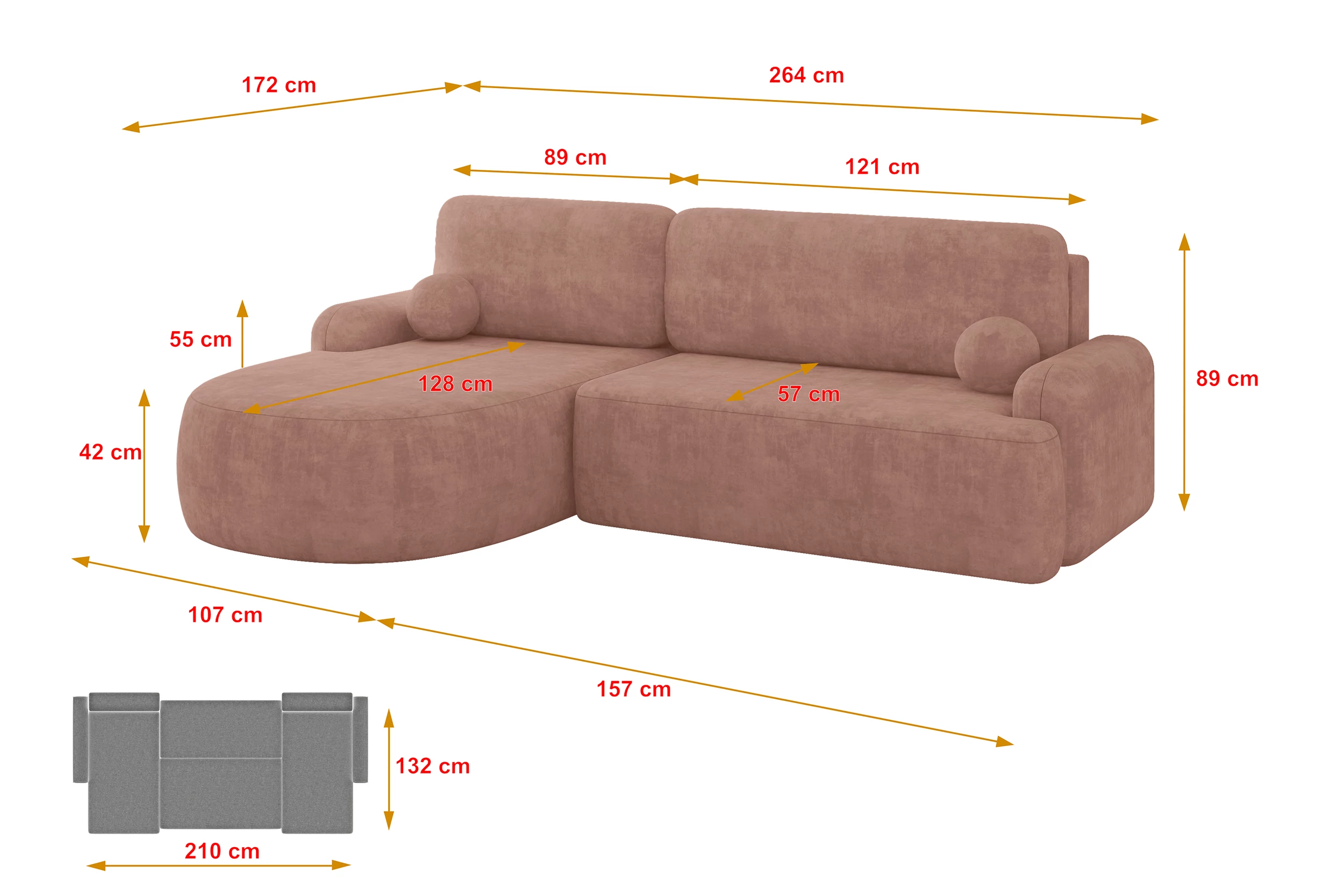 Ecksofa LIRA-L Apricot - Dream Velvet 202.07