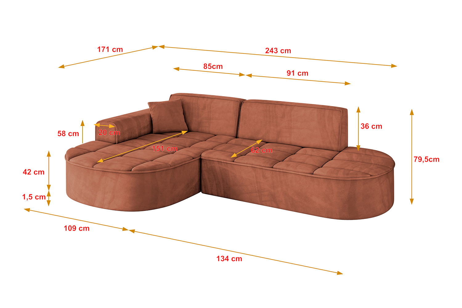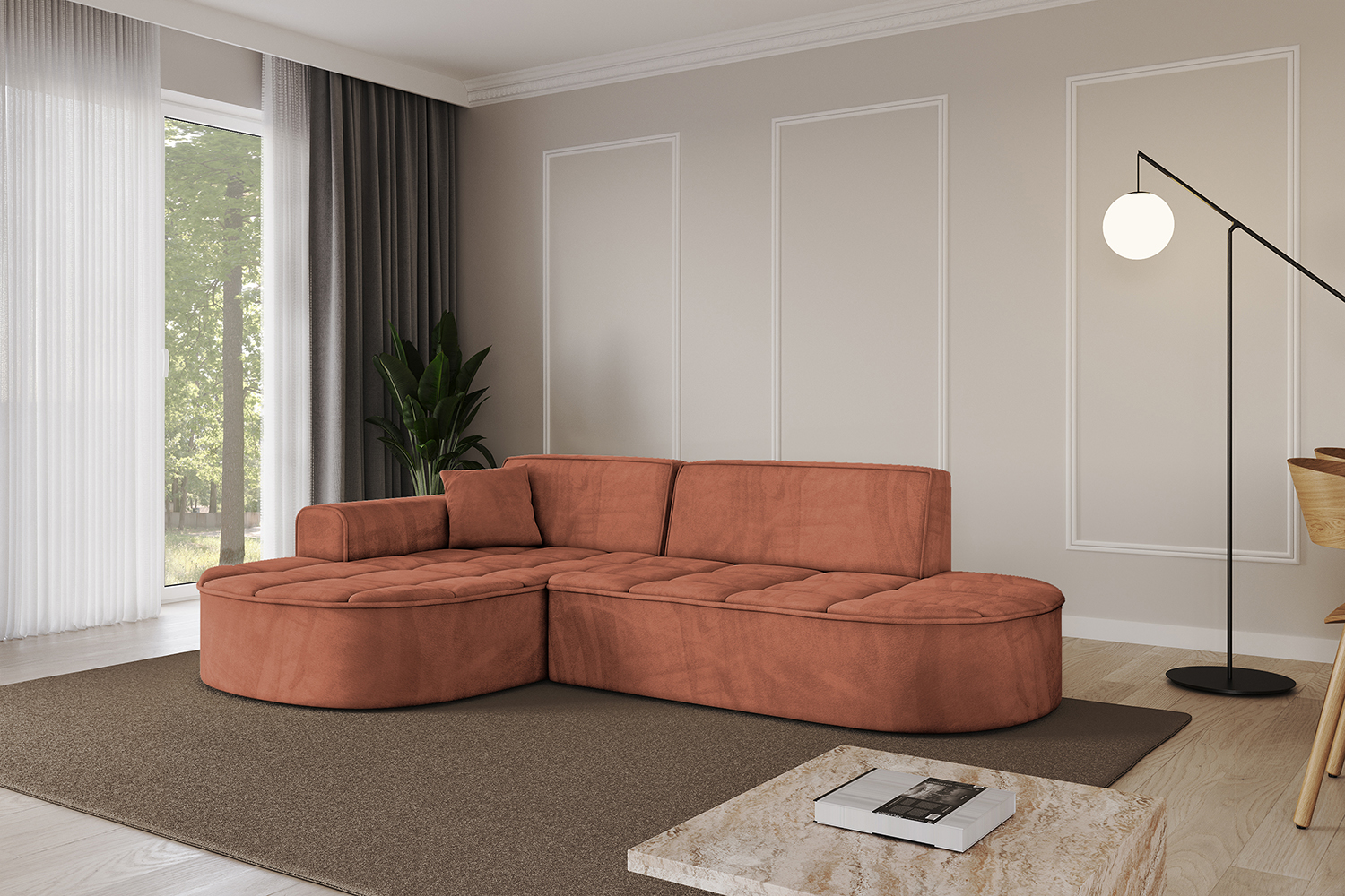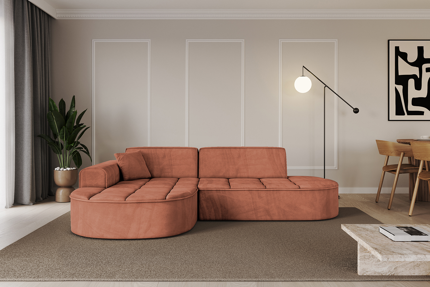 Ecksofa TARO-L1 Apricot - Dream Velvet 202.07