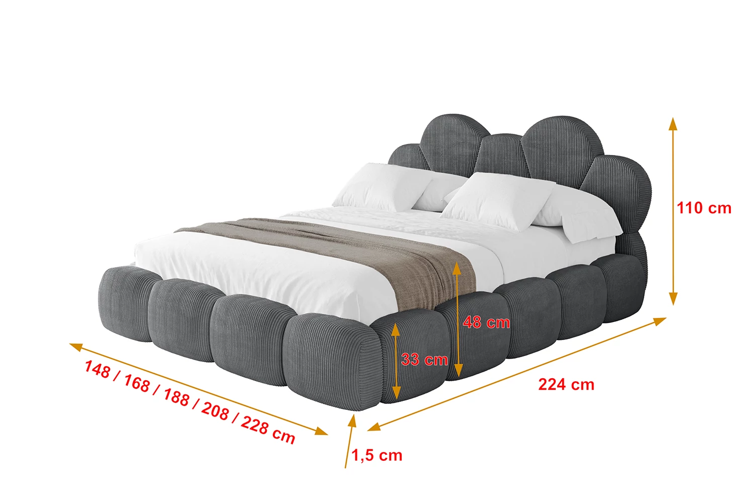 Polsterbett LANA Dunkelgrau - Poso 115 160x200 cm