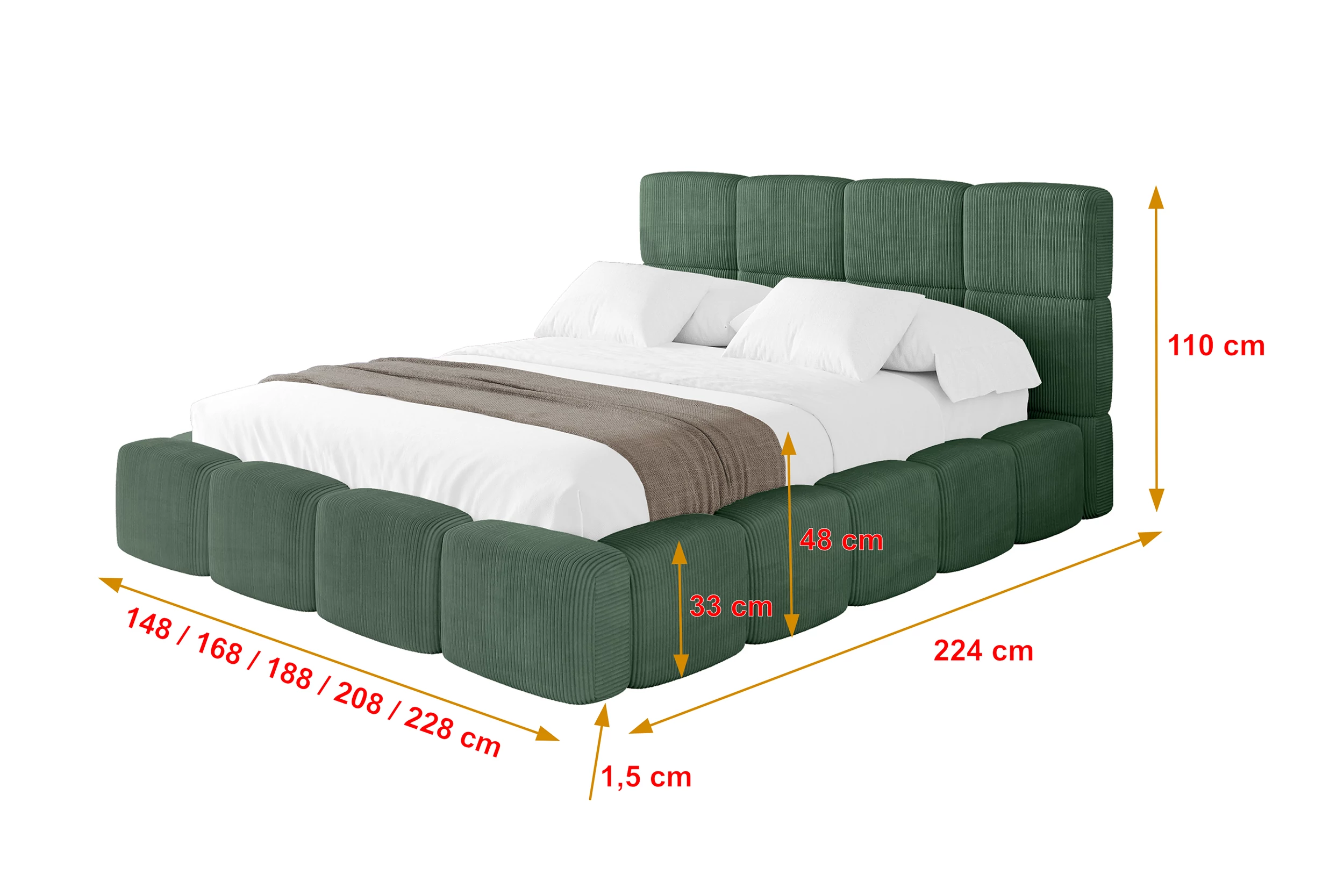Polsterbett NATA Grün - Poso 14 120x200 cm
