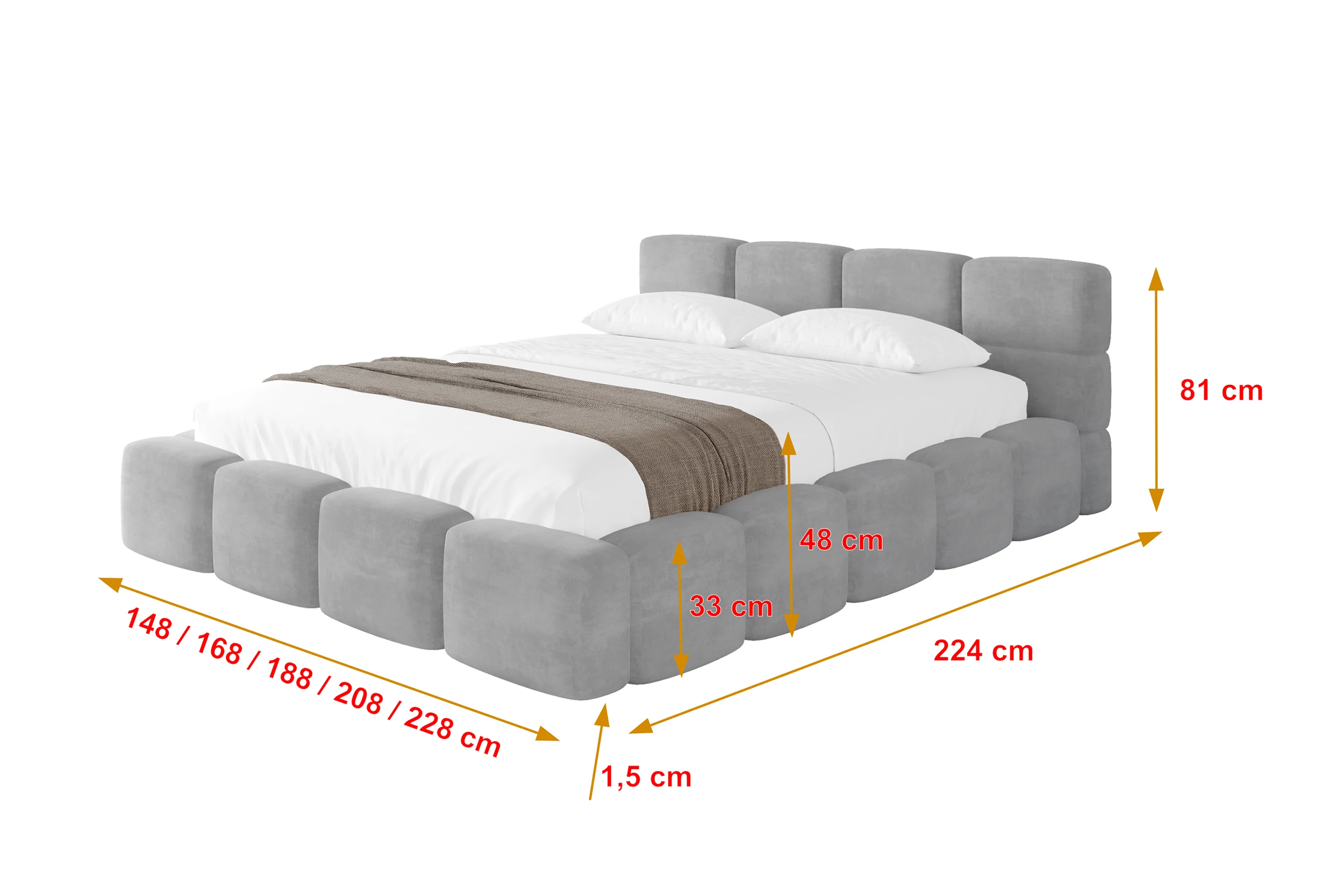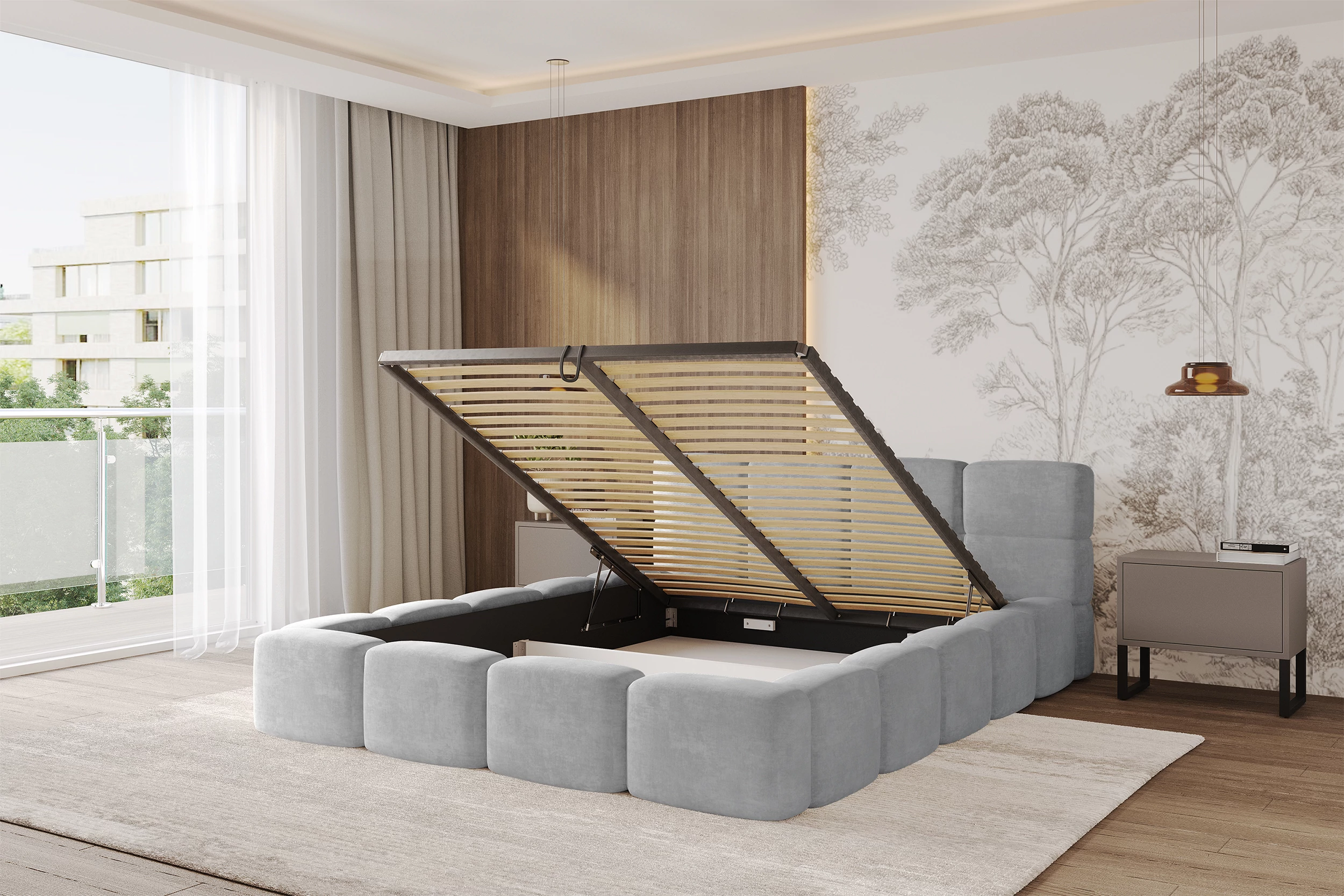 Polsterbett NATA-v1 Hellgrau - Monolith 84 120x200 cm