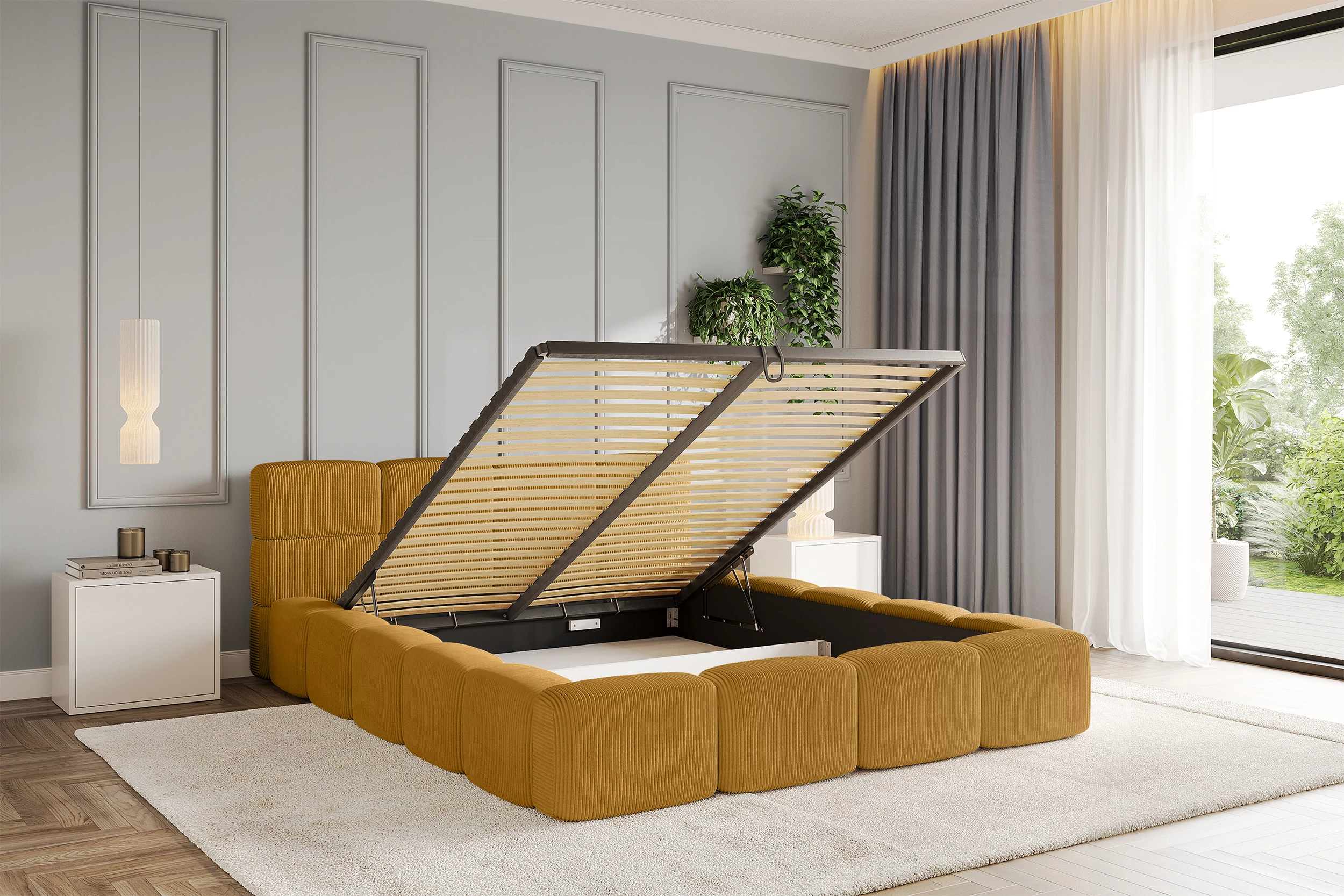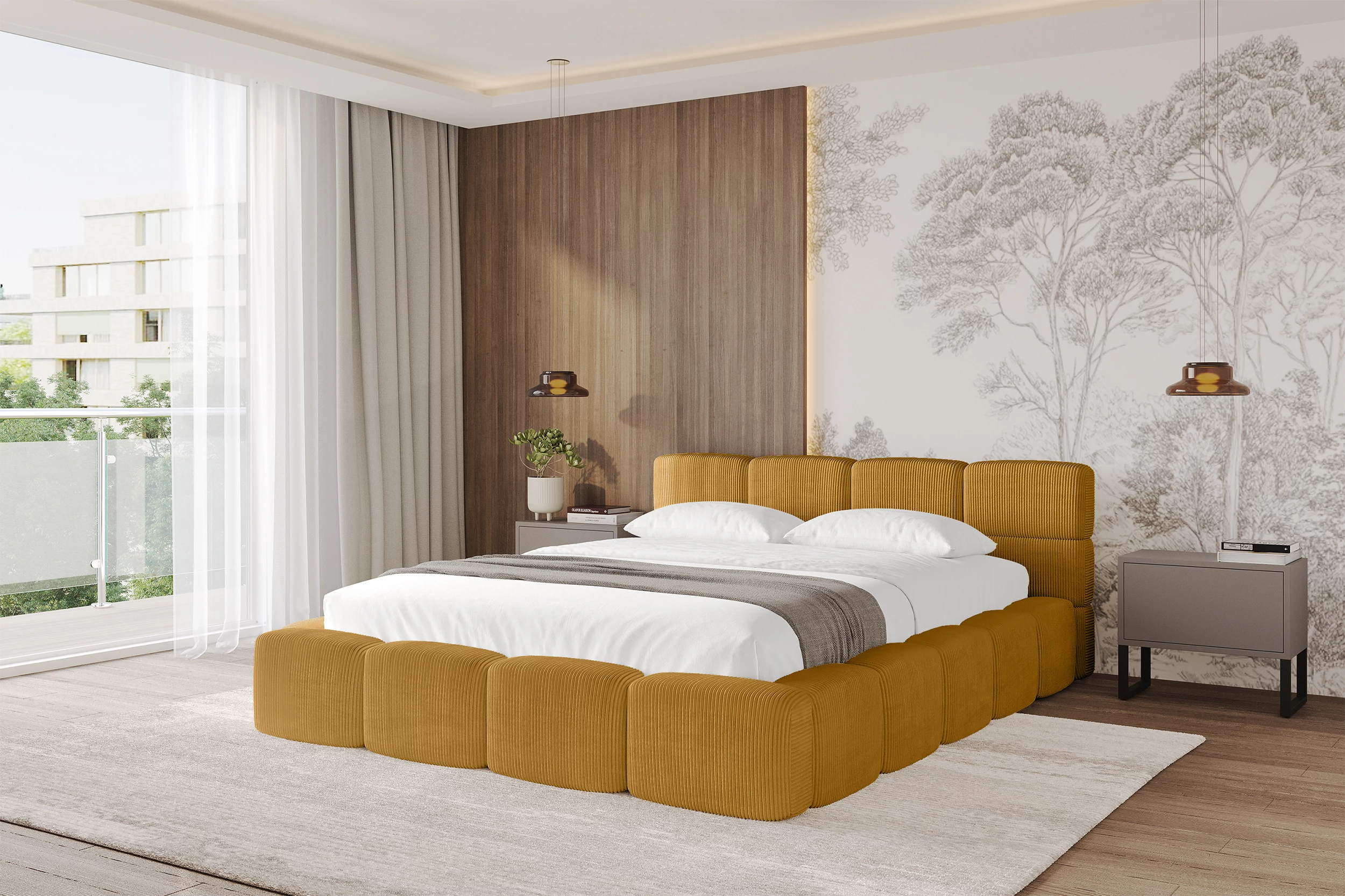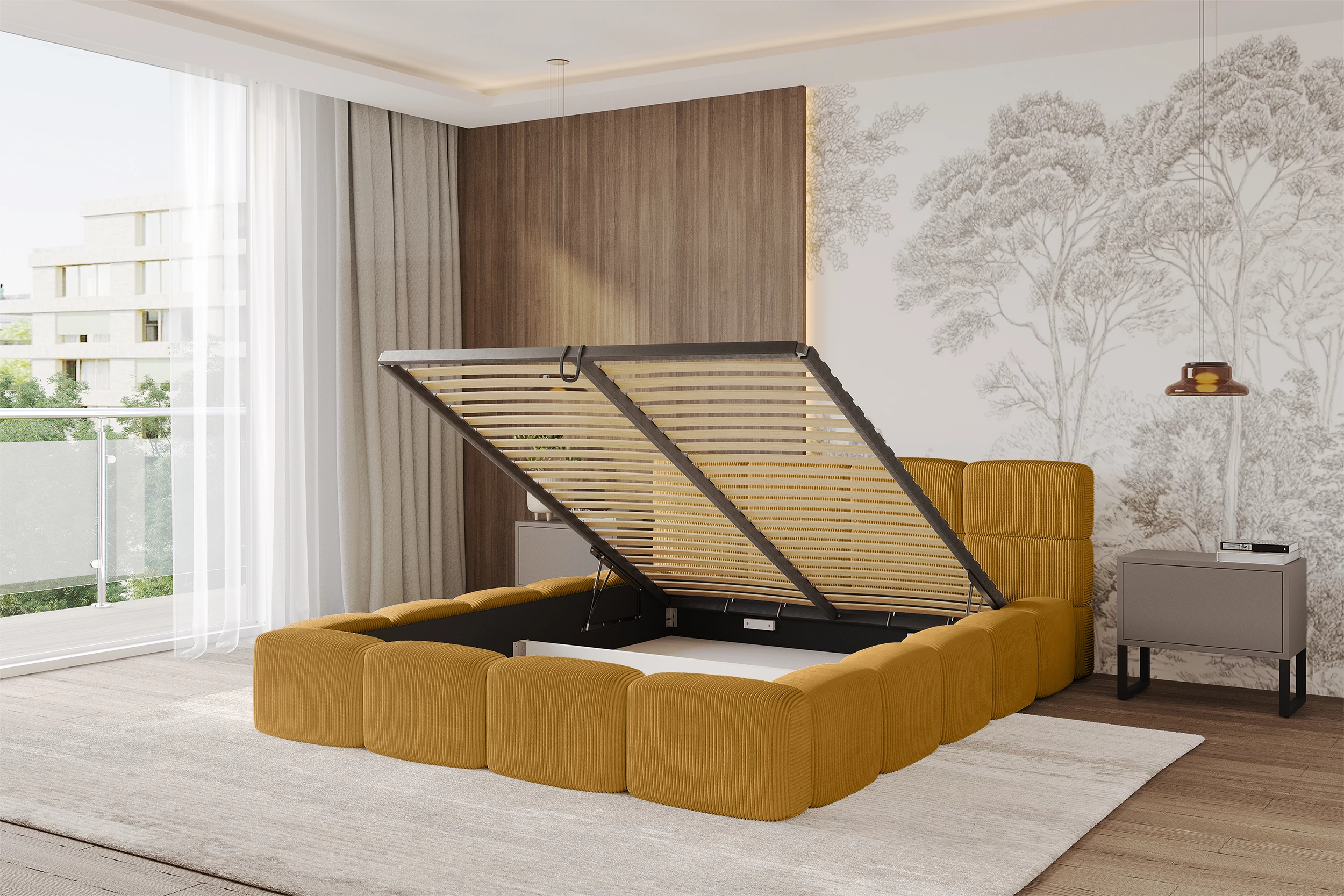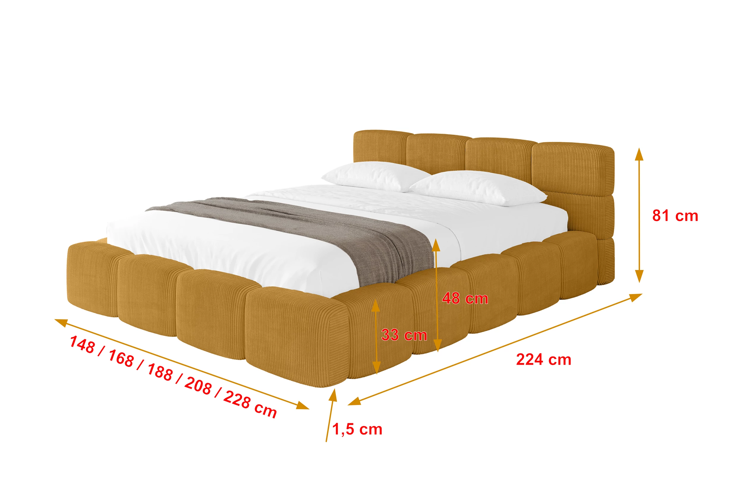 Polsterbett NATA-v1 Senfgelb - Poso 42 120x200 cm