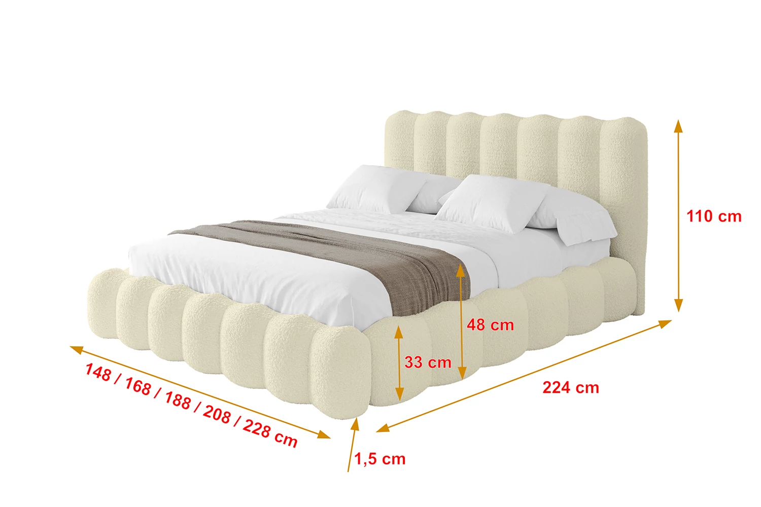 Polsterbett SORA Beige - Quelle 02 160x200 cm
