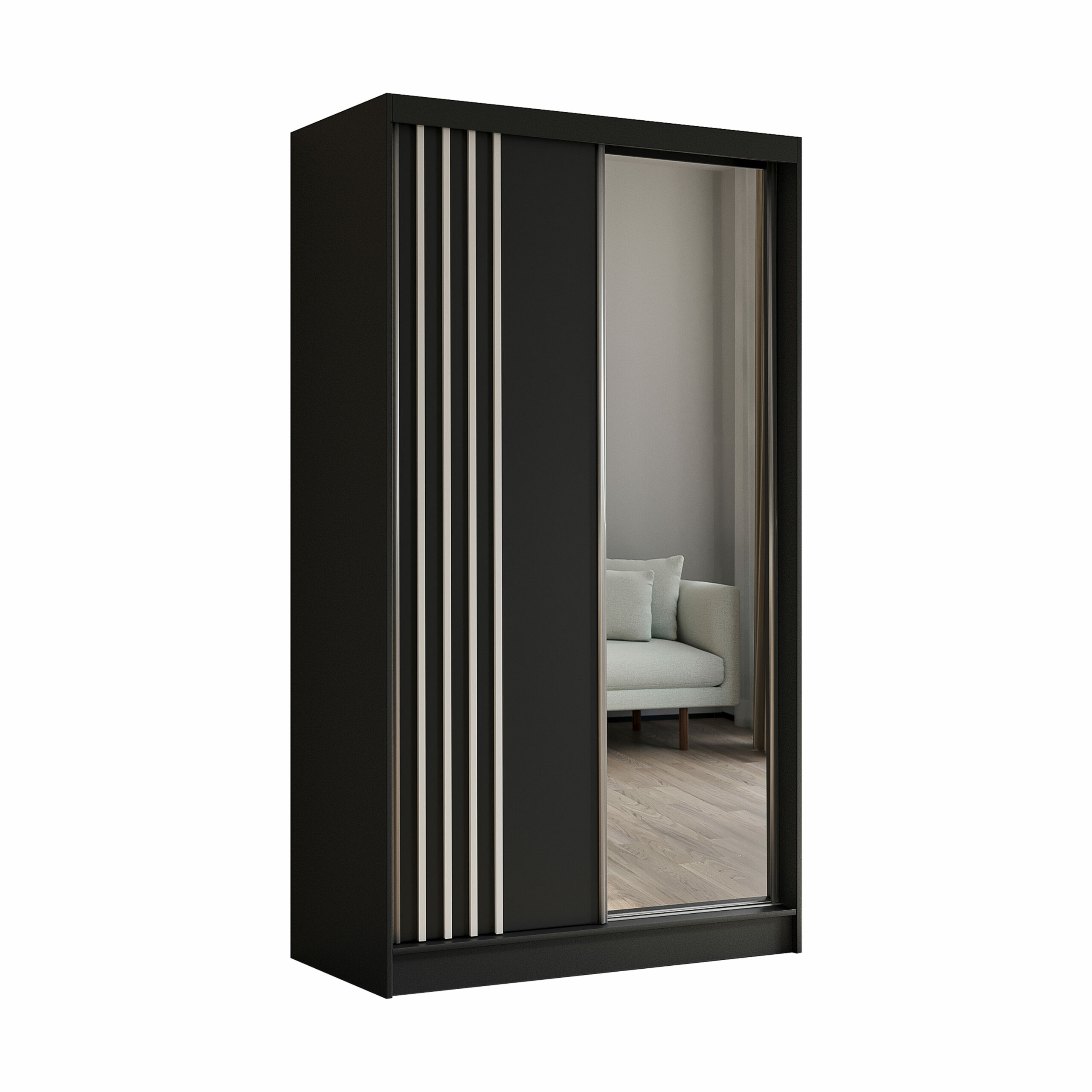 Schiebetürenschränke NALLA Schwarz + Schwarz + Weiß 120 cm x 61 cm x 216 cm