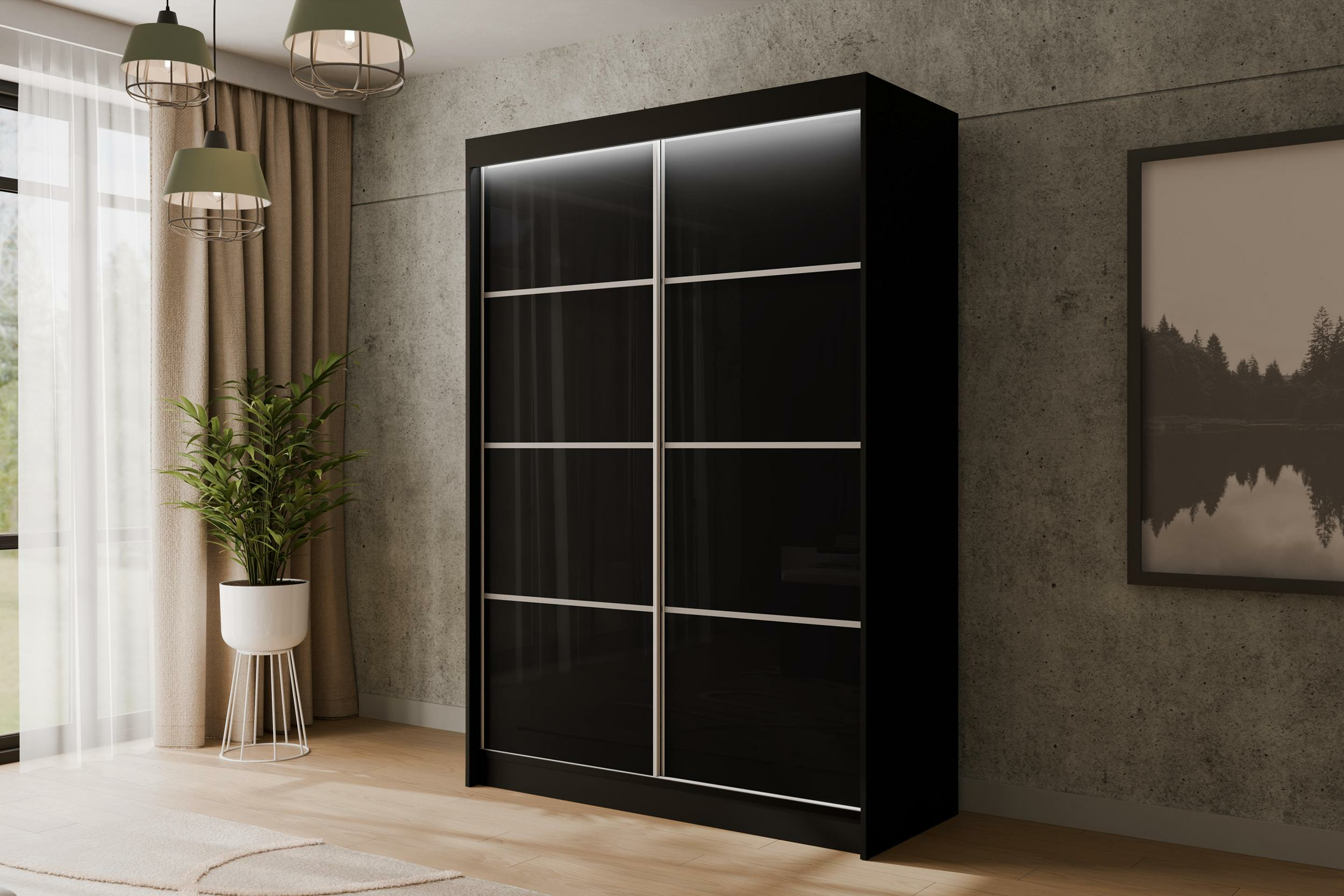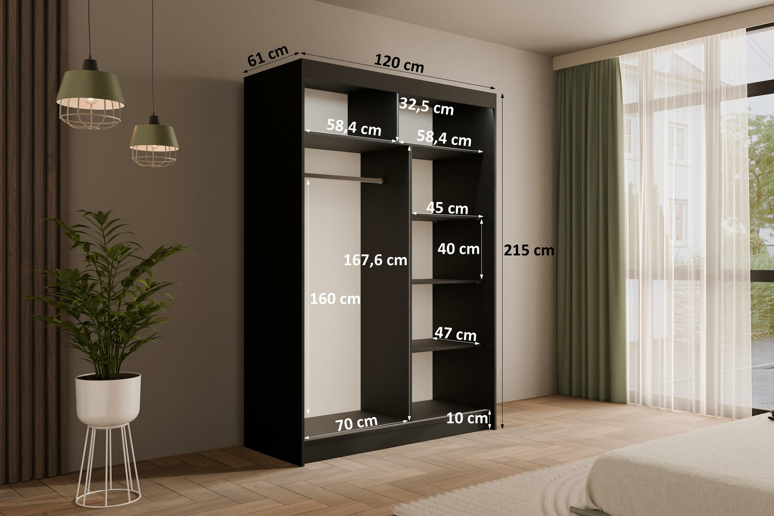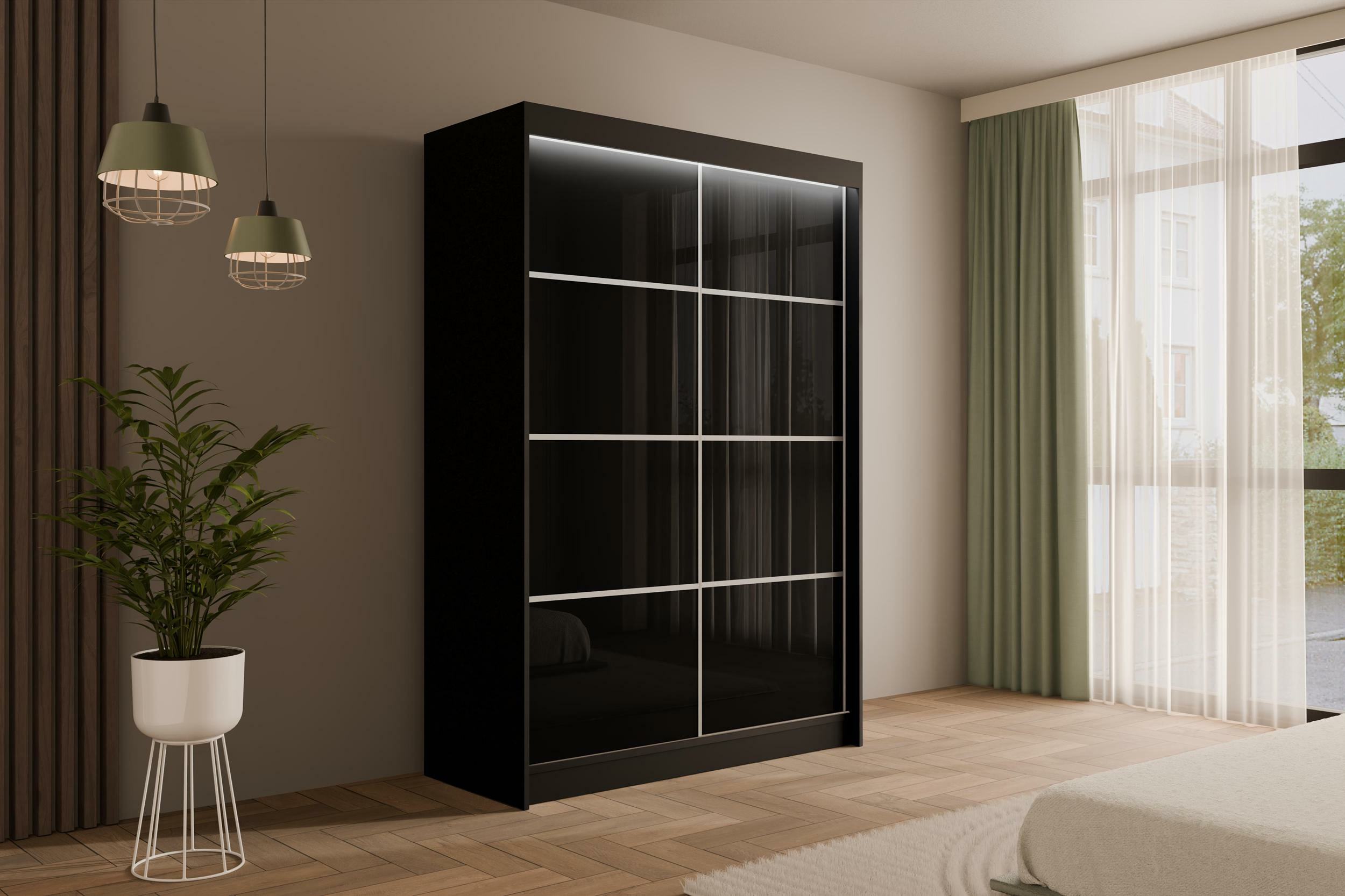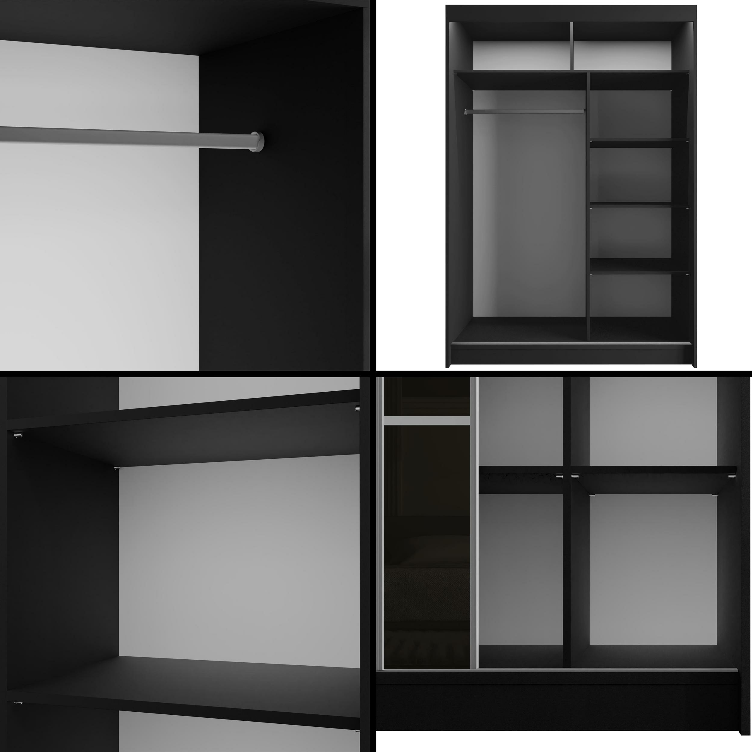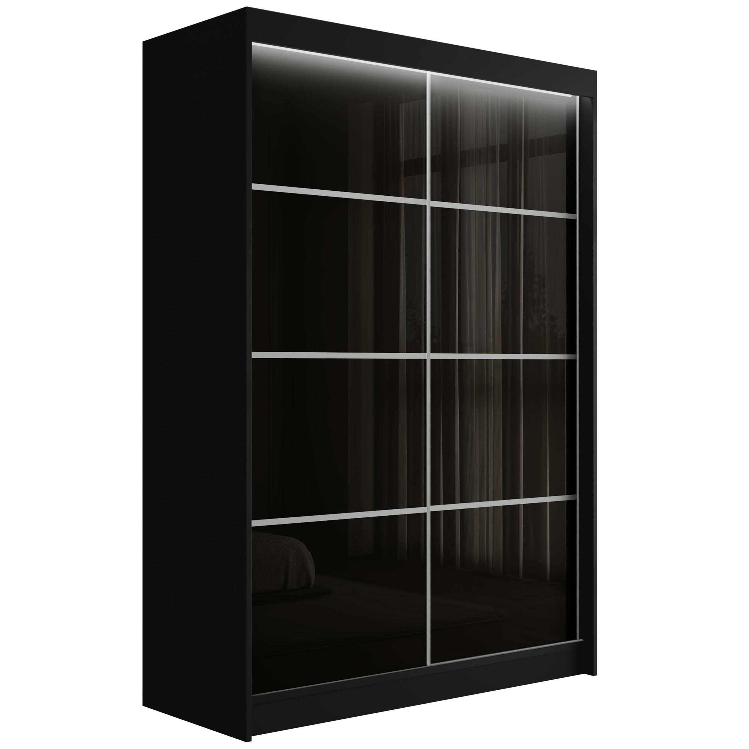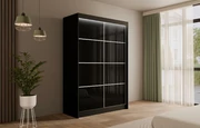 Schiebetürenschränke PEKA3 Schwarz + silber Sprossen 120 cm x 61 cm x 215 cm
