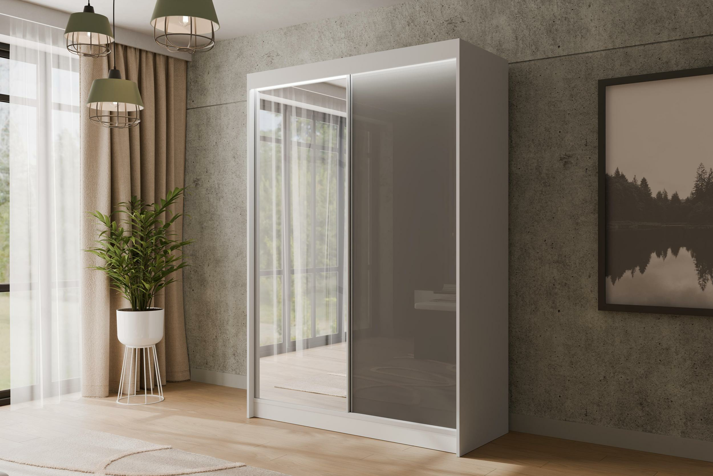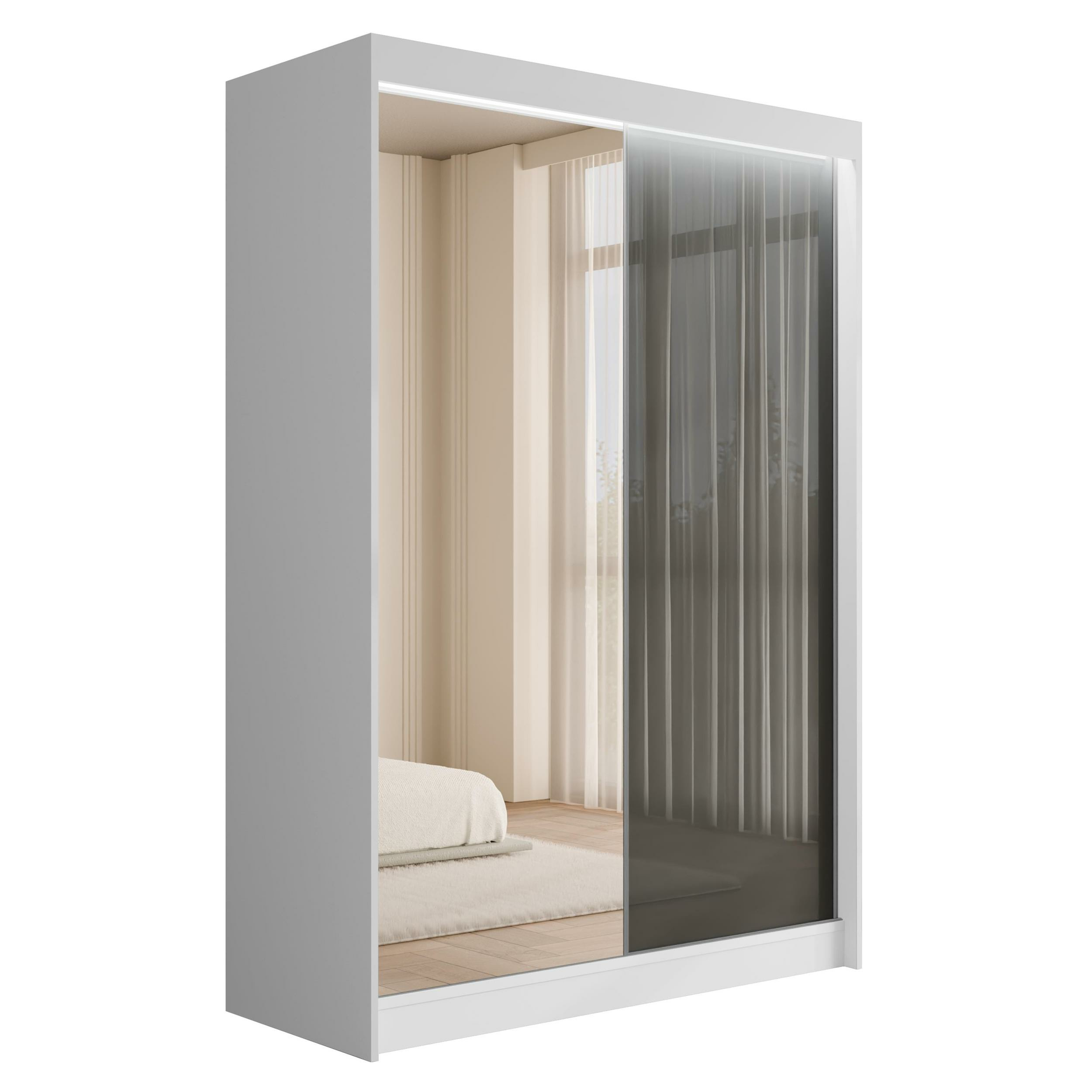 Schiebetürenschränke VESLI Weiß + Lacobel Grau 120 cm x 61 cm x 215 cm