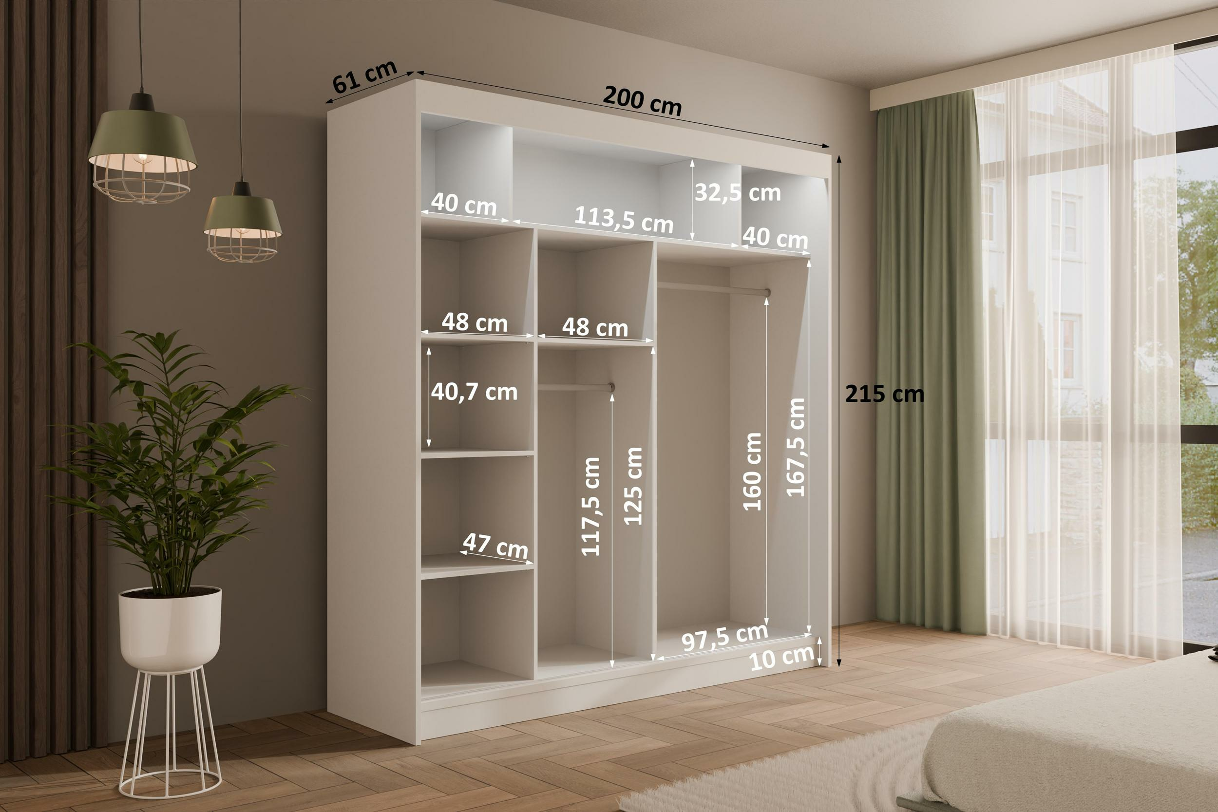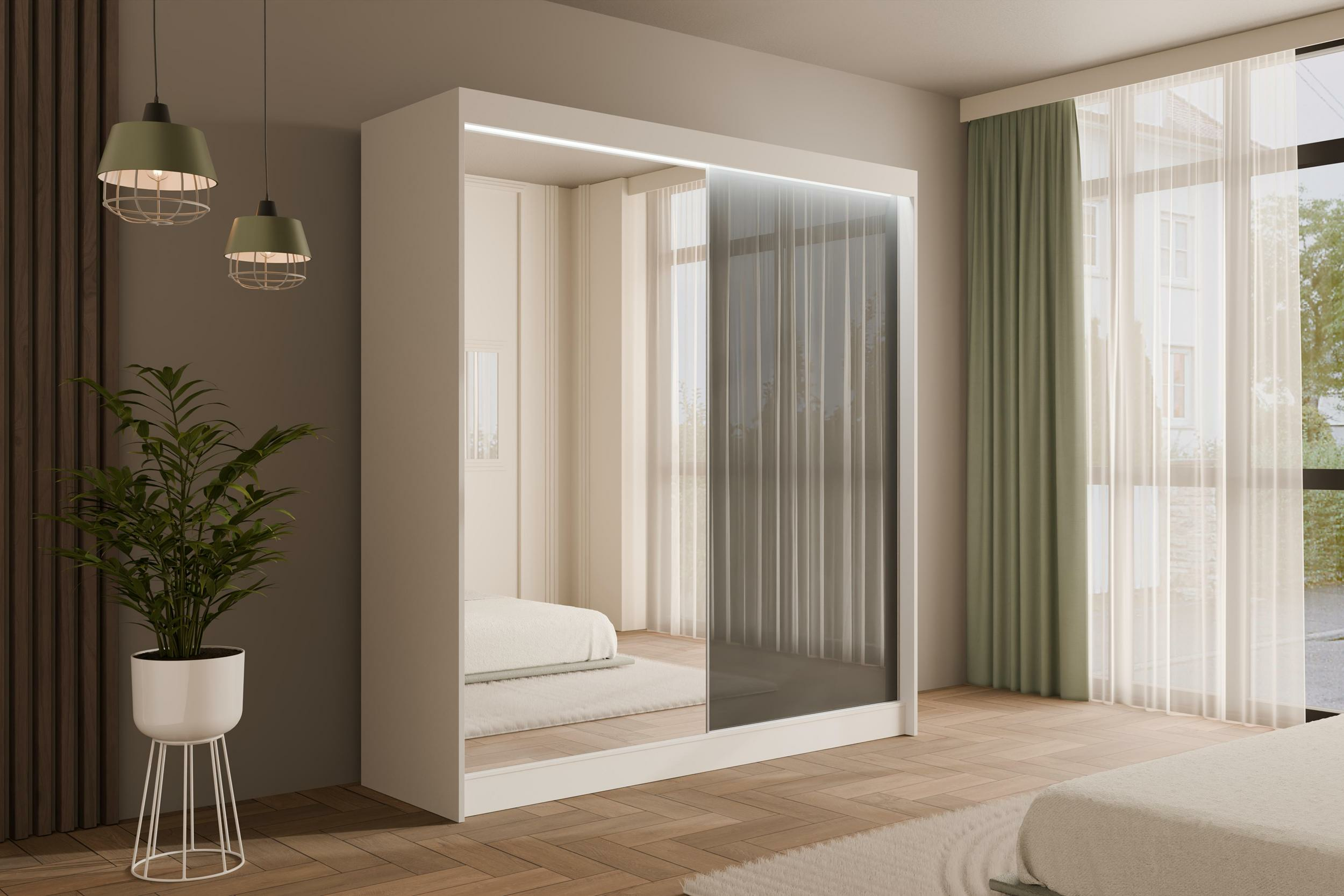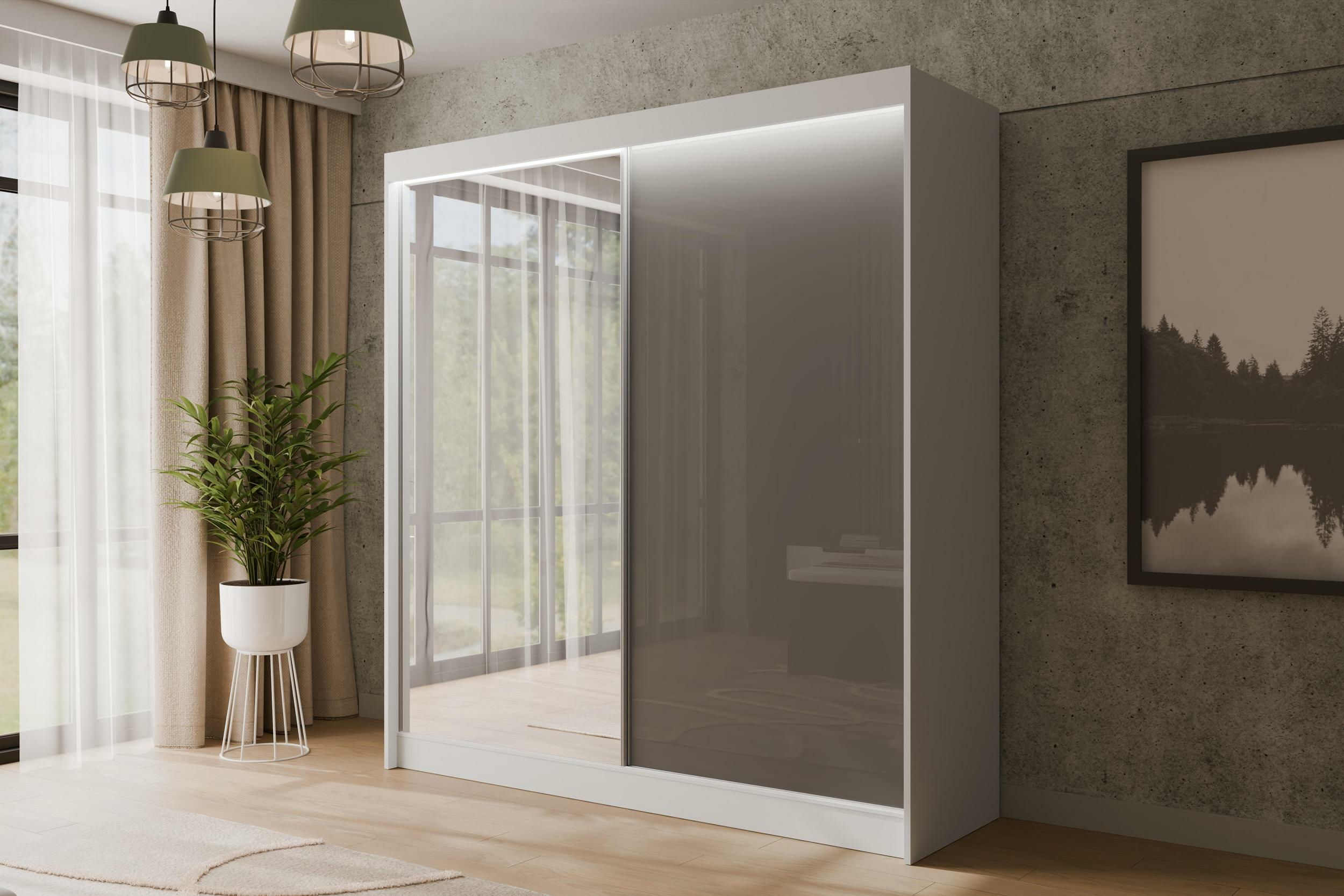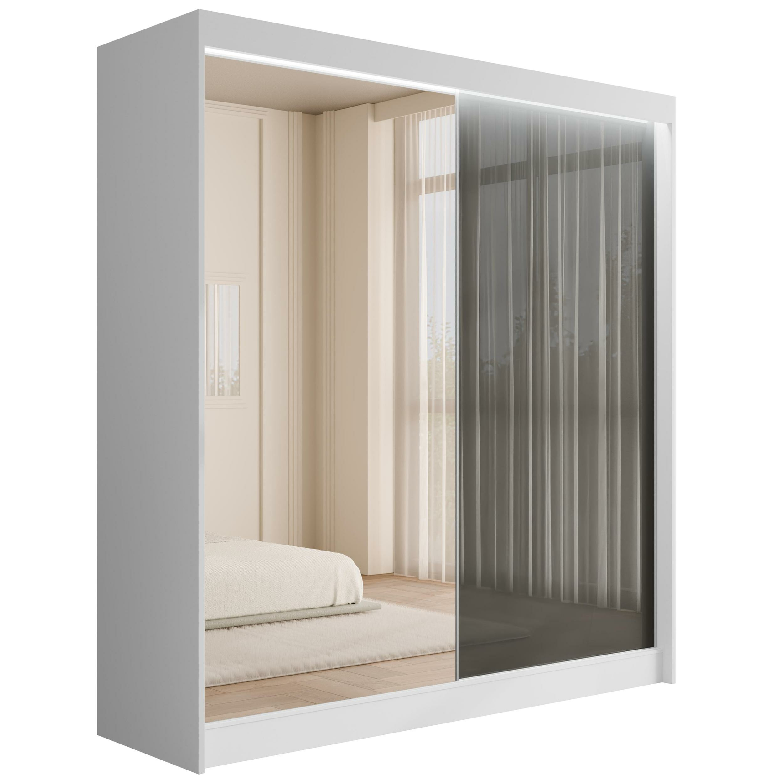 Schiebetürenschränke VESLI Weiß + Lacobel Grau 200 cm x 61 cm x 215 cm
